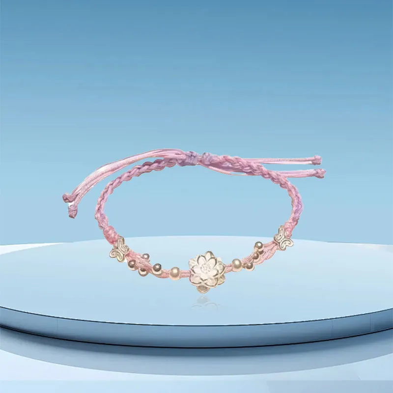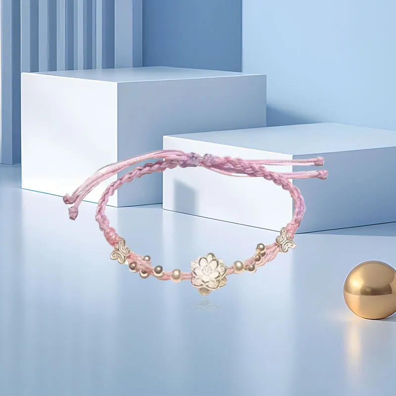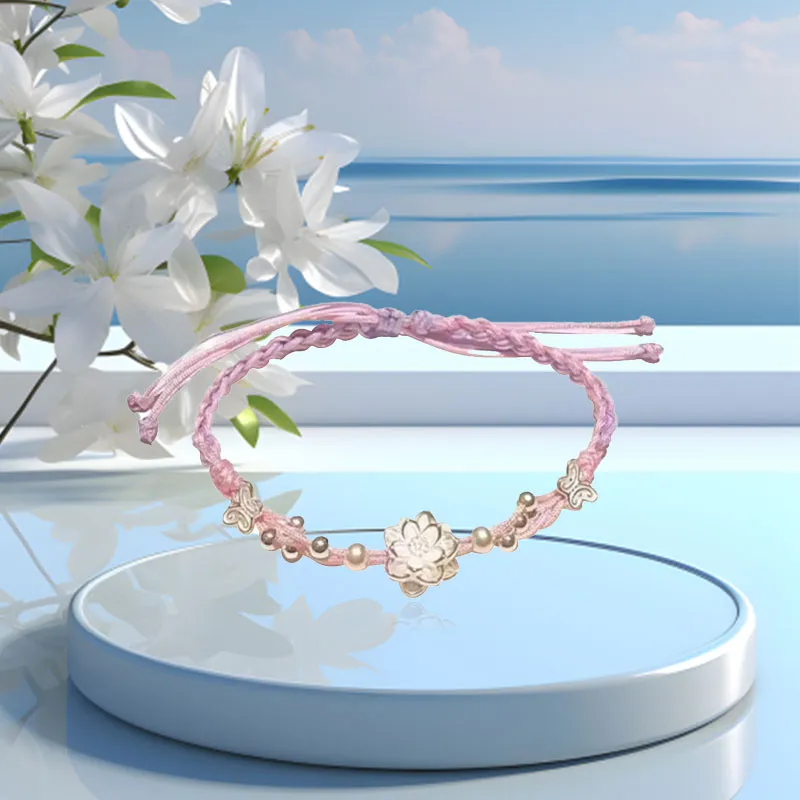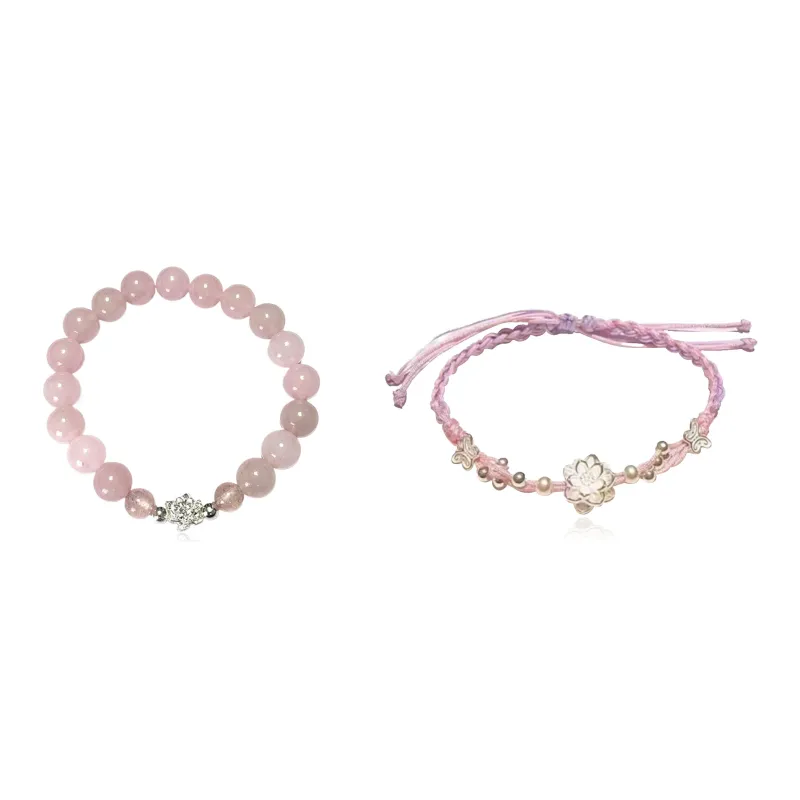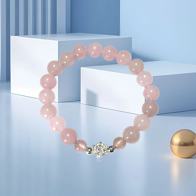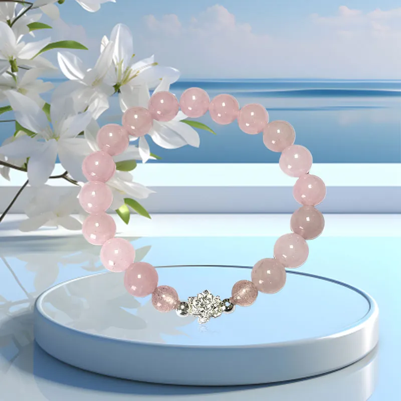 Стиль:Браслет из бусин с цветом "Счастливый Лотос" и клубничным кварцем