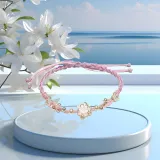 Браслет из бусин с цветом "Счастливый Лотос" и клубничным кварцем