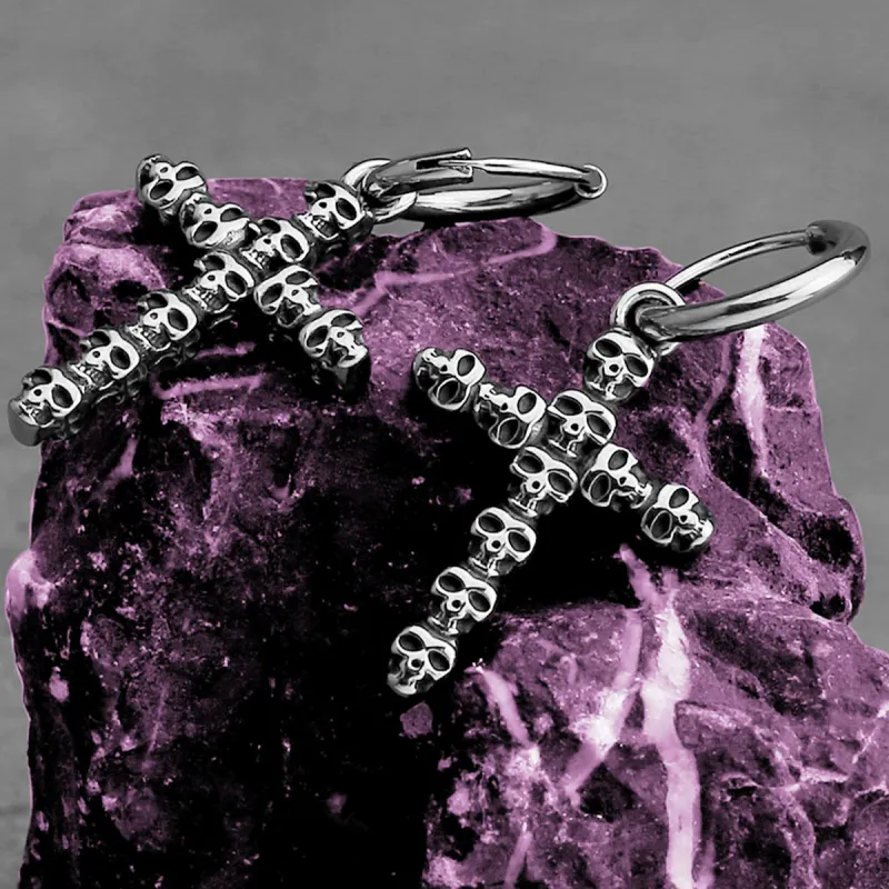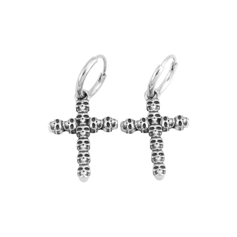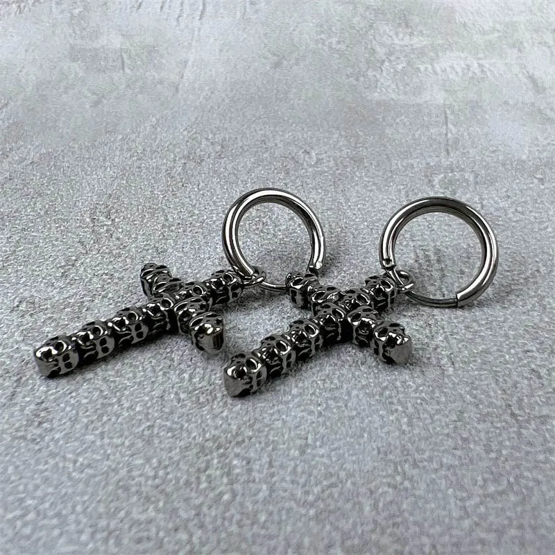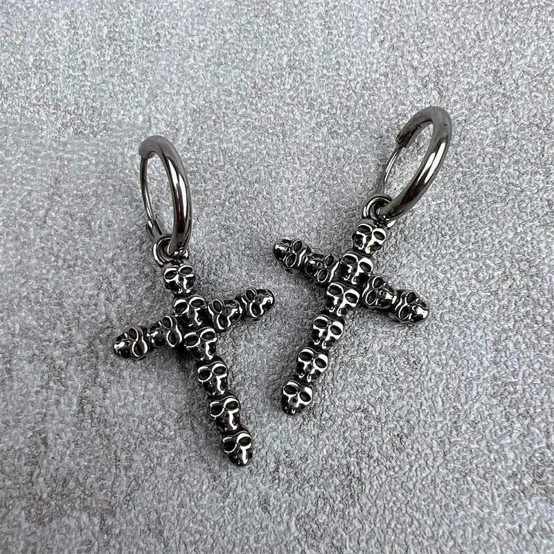 Стиль:Серьги-кольца из титановой стали с черепами и крестом
