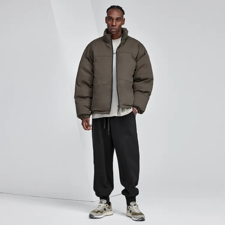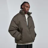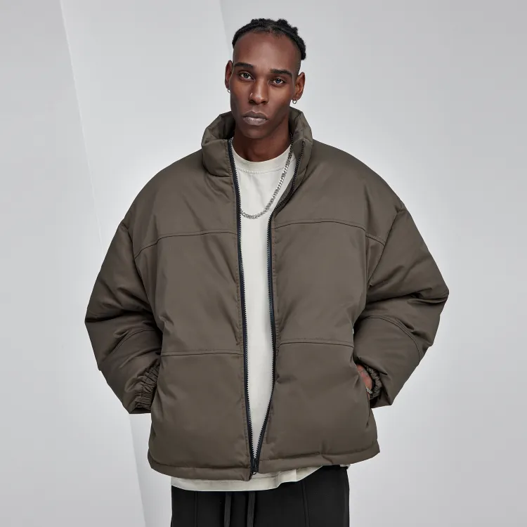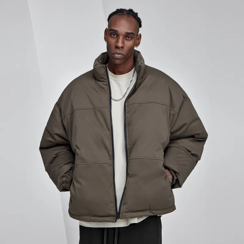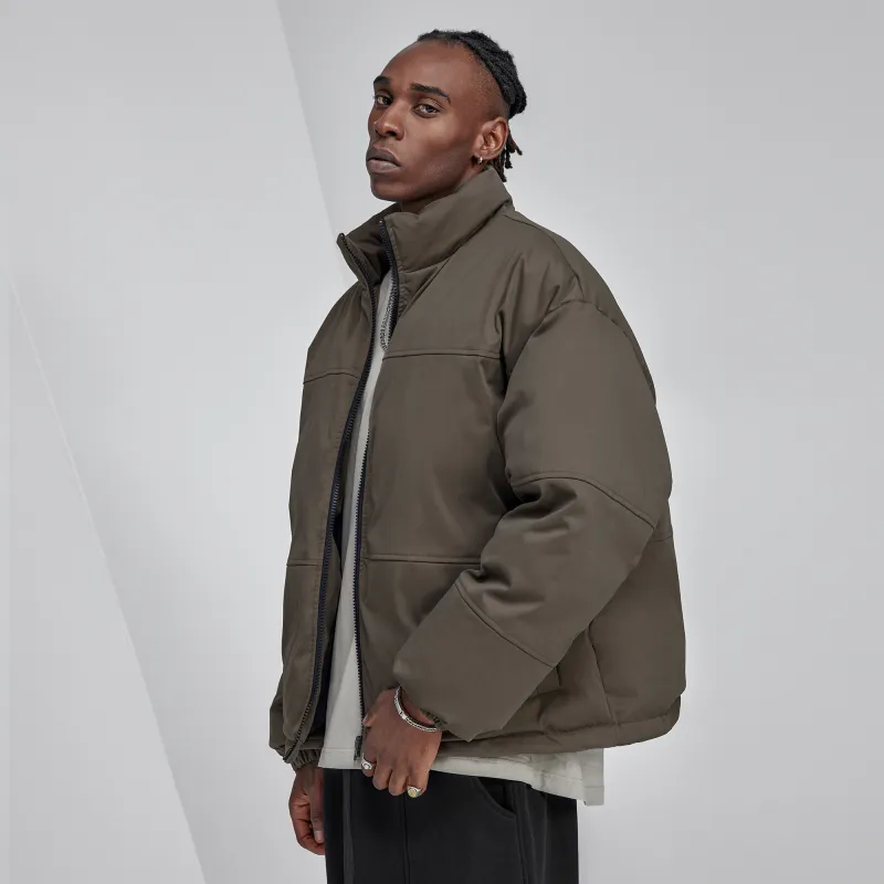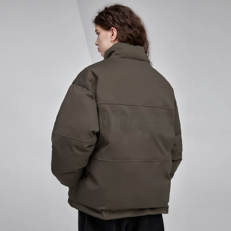 Bodydream Воротник-стойка Свободный крой Утолщенный And Флисовая подкладка Короткий пуховик Мужской Темно-армейский зеленый