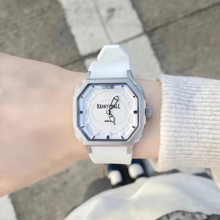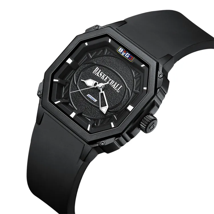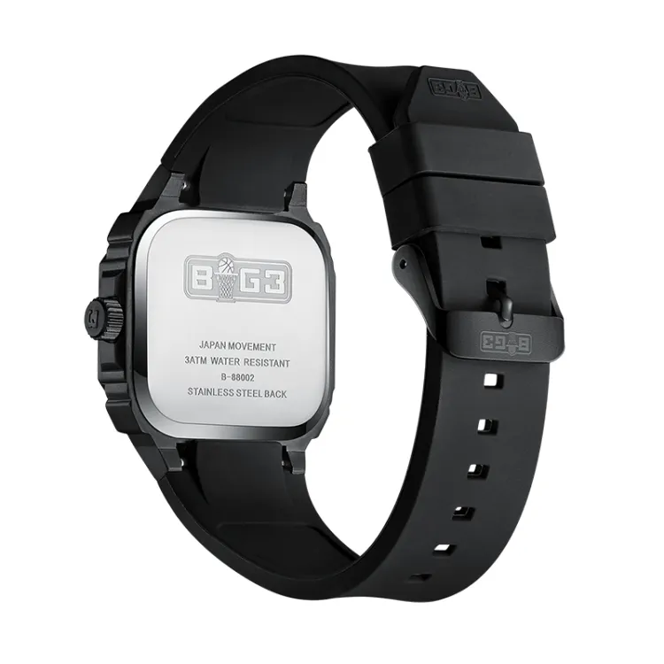 BOG3 Small Block Кварцевый механизм Резиновый ремешок Часы Унисекс Черный циферблат