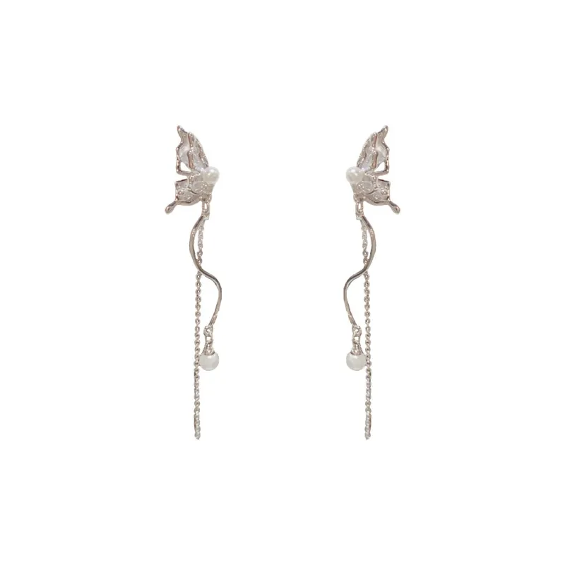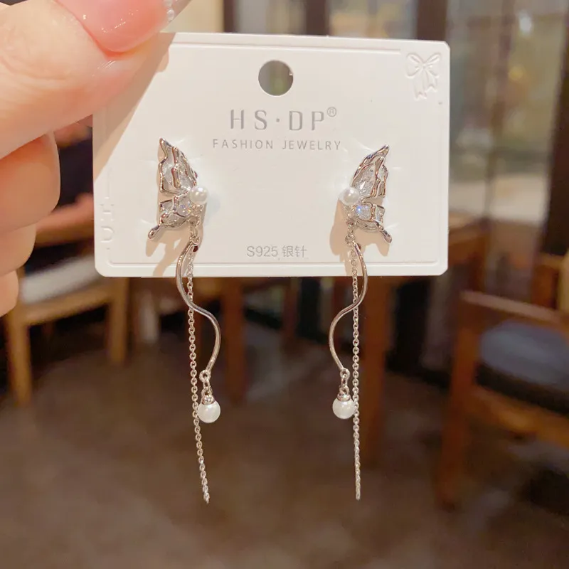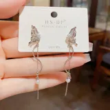 Стиль:Серьги-подвески с бабочкой, длинные, с кисточкой (утолщенный реальный золотой гальванизированный)