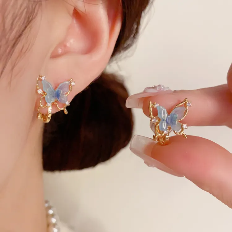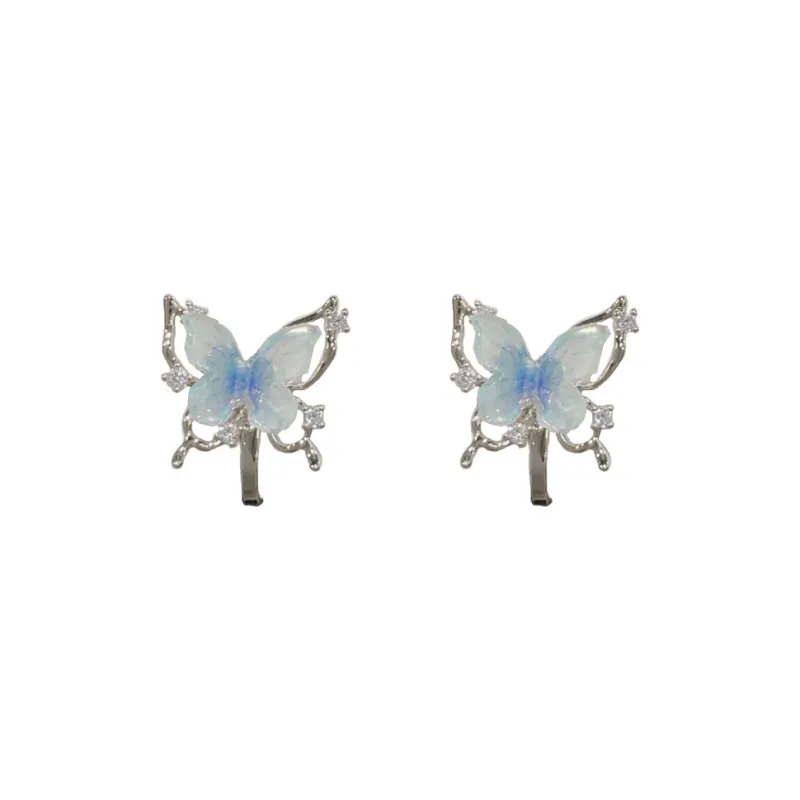 Стиль:Серьги "Бабочка" Серебряные-Градиентные (Утолщенный Реальное Золото с Гальваническим Покрытием)