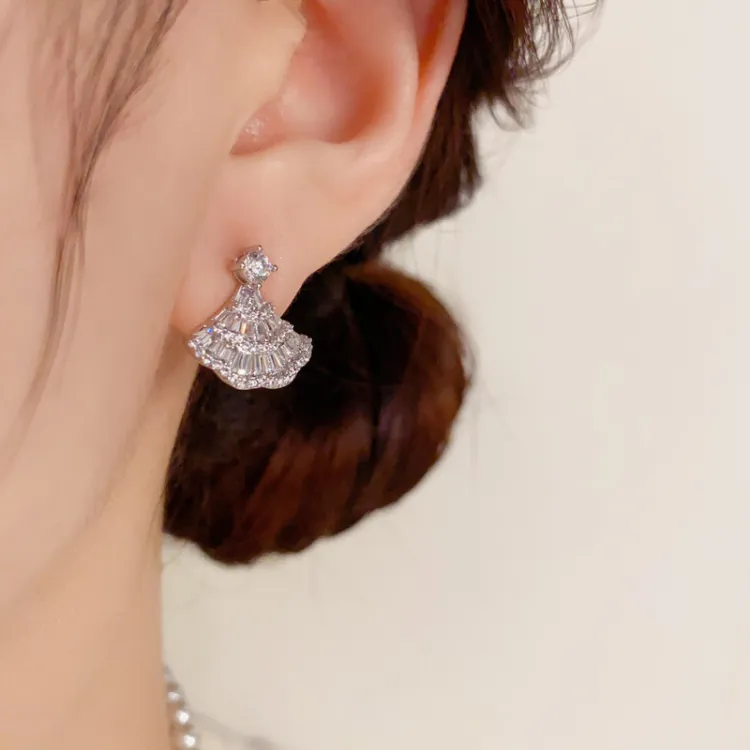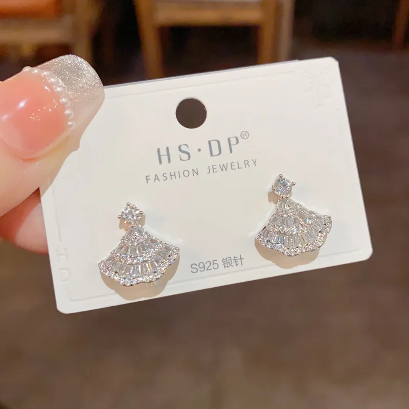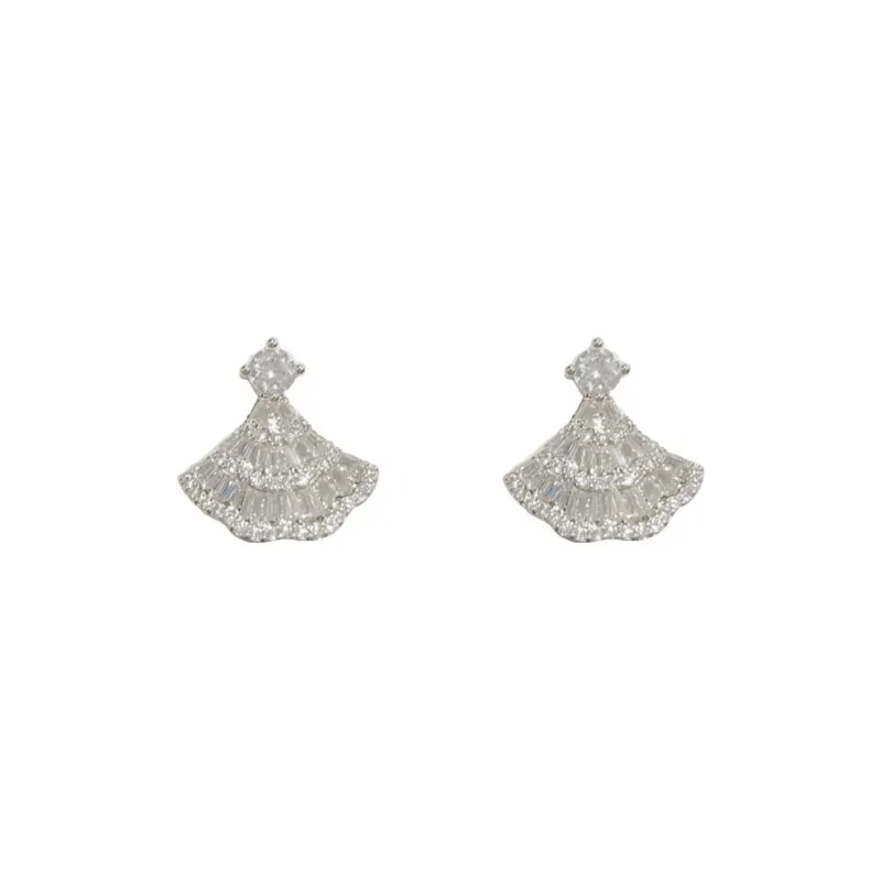 Стиль:Серьги-гвоздики из стерлингового серебра с полным цирконом - Веер (Утолщенная реальная золотая гальванизация)