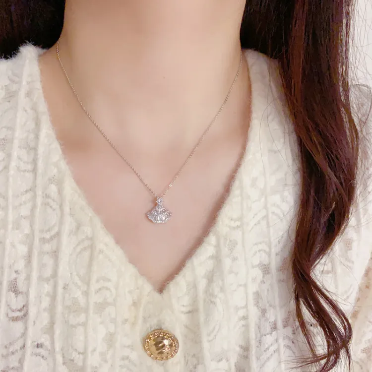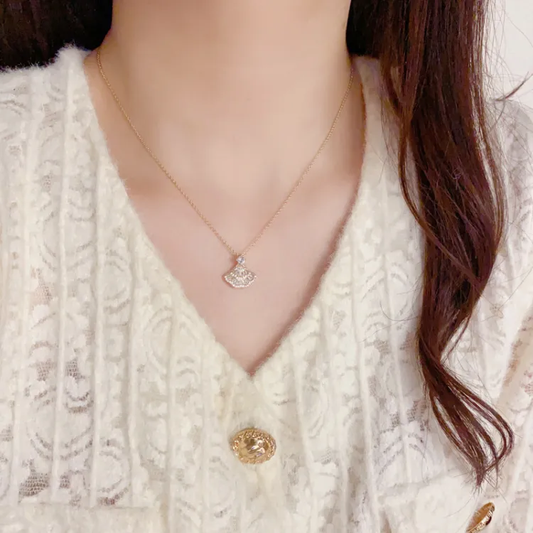 Колье с веером, наполненное золотом, с цирконием (утолщенное настоящее золото, гальваническое покрытие)