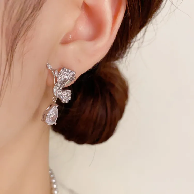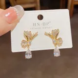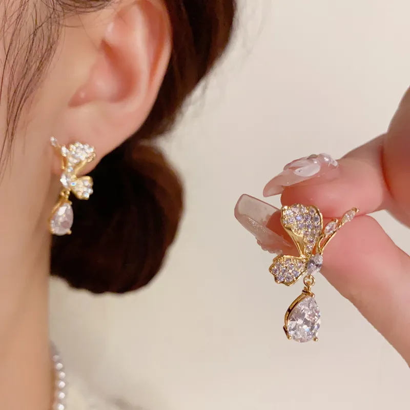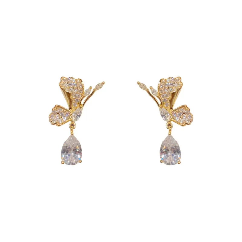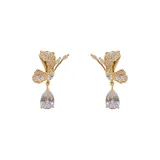 Стиль:Серьги-подвески "Золотой Циркон Бабочка Капля воды" (Утолщенный реальный золотой гальванизированный)