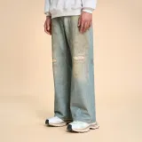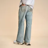 Безшовный крой, синий, унисекс, джинсы