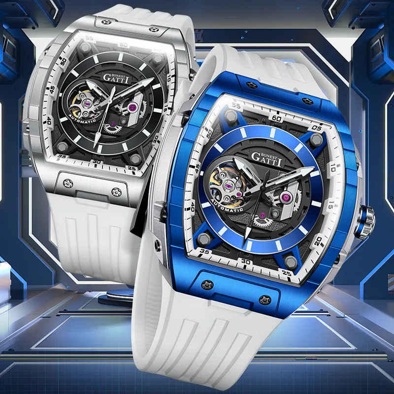 BONEST GATTI Phantom Speed Collection Автоматический Механический Механизм Резиновый Ремешок Часы Мужские Часы Черепный Циферблат
