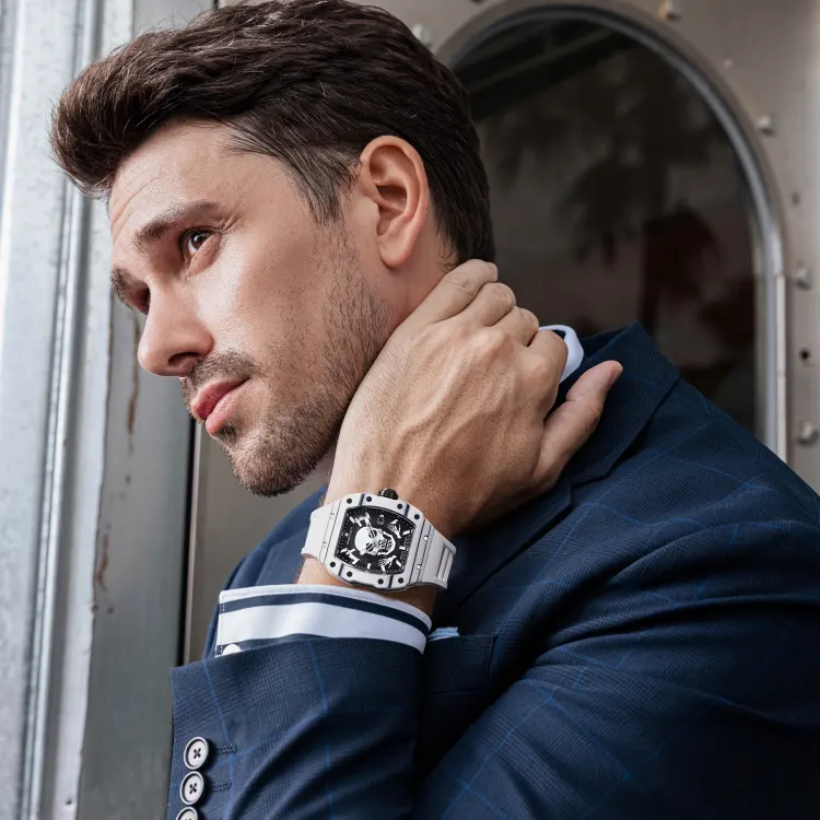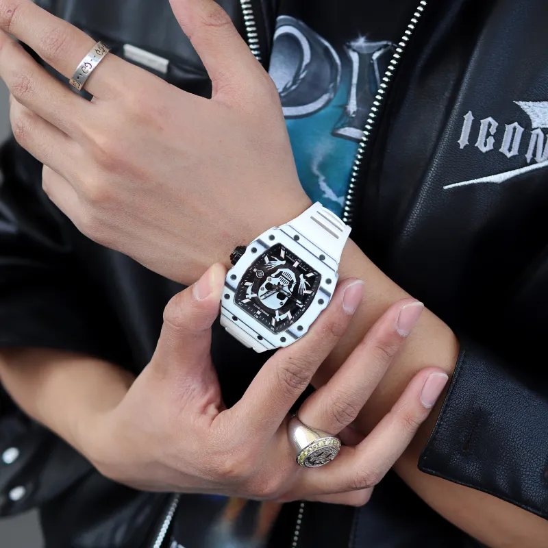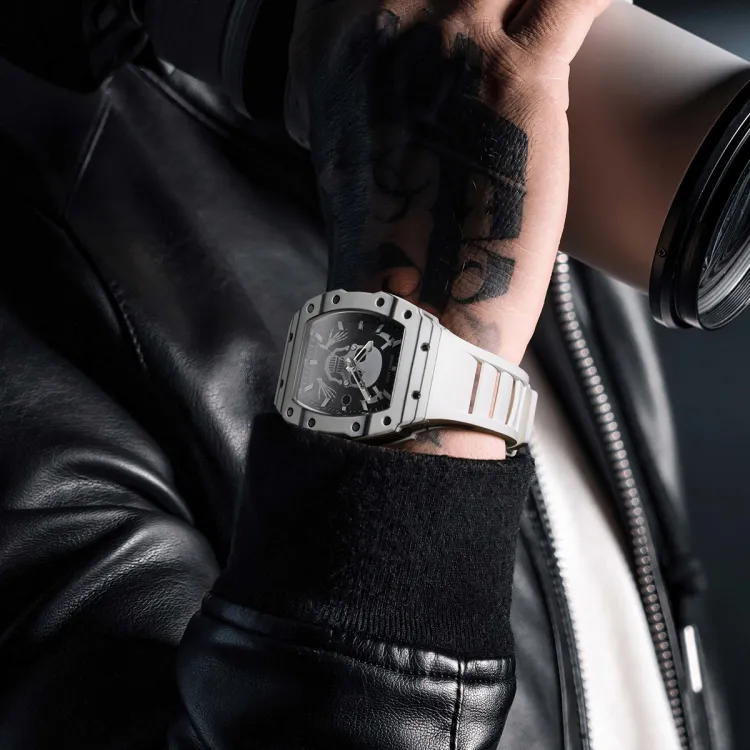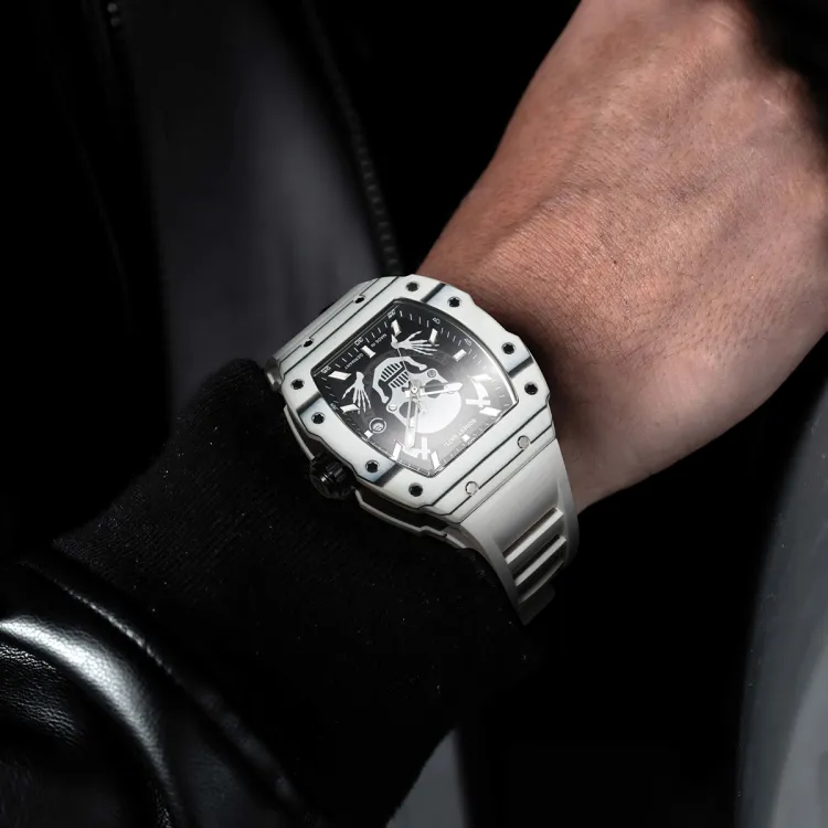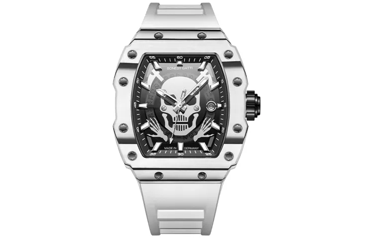 BONEST GATTI Phantom Time Коллекция Автоматический Механический Механизм Резиновый Ремешок Часы Мужские Черный Циферблат