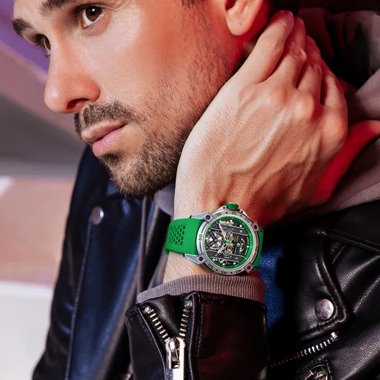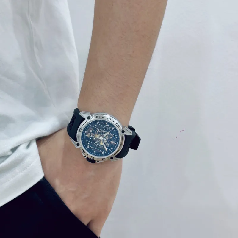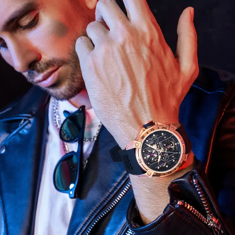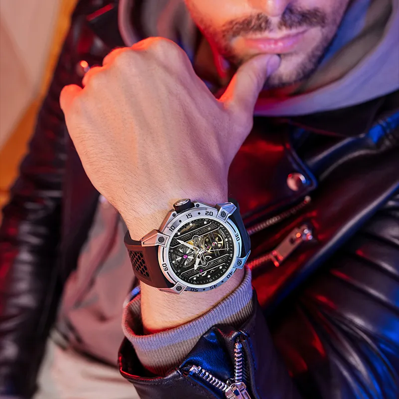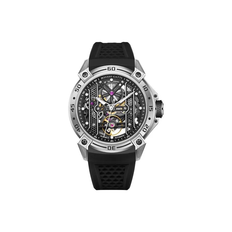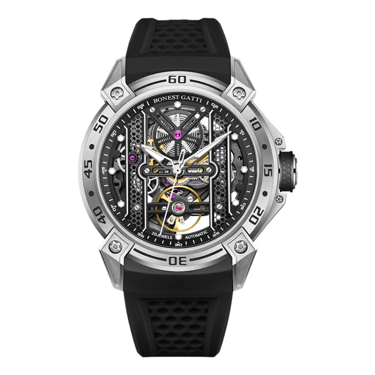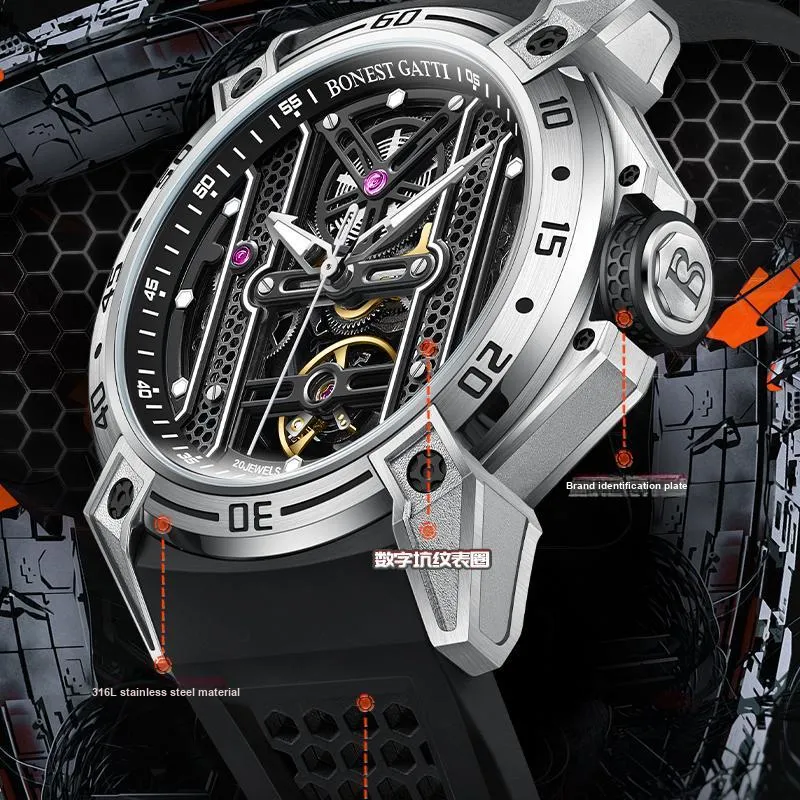 BONEST GATTI Phantom Time Коллекция Автоматический Механический Механизм Резиновый Ремешок Часы Мужские Часы Черепный Циферблат