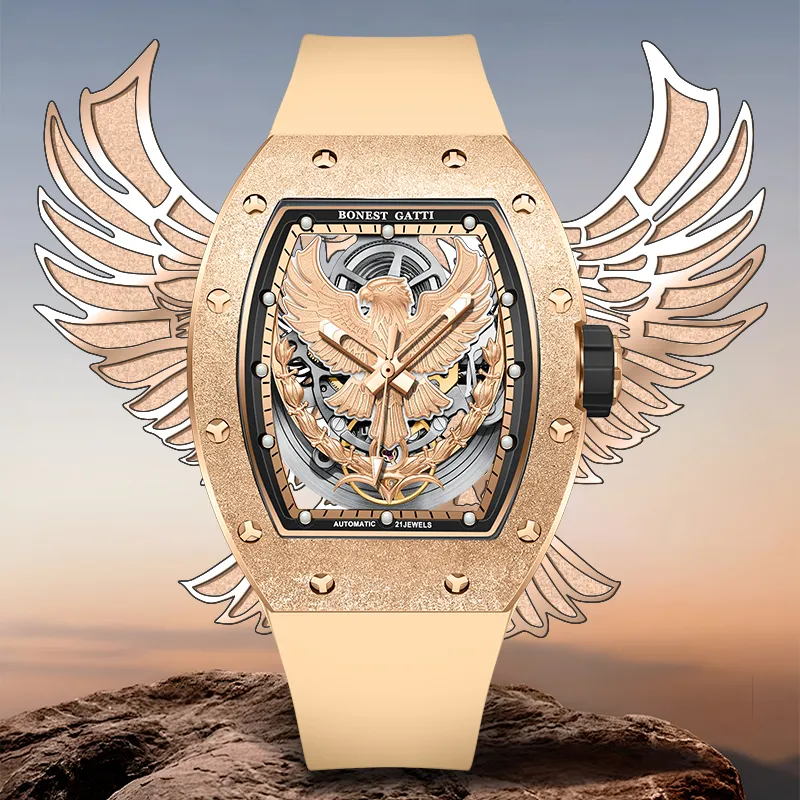 BONEST GATTI Soaring Collection Автоматический Механический Механизм Часы Мужские Серебристый Циферблат