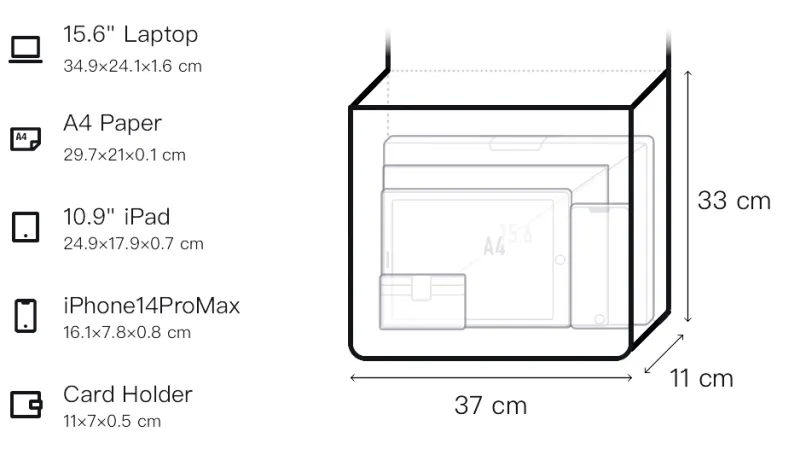 Длина (размер в длину): 37 см, Ширина: 11 см, Рекомендуемая высота: 33 см