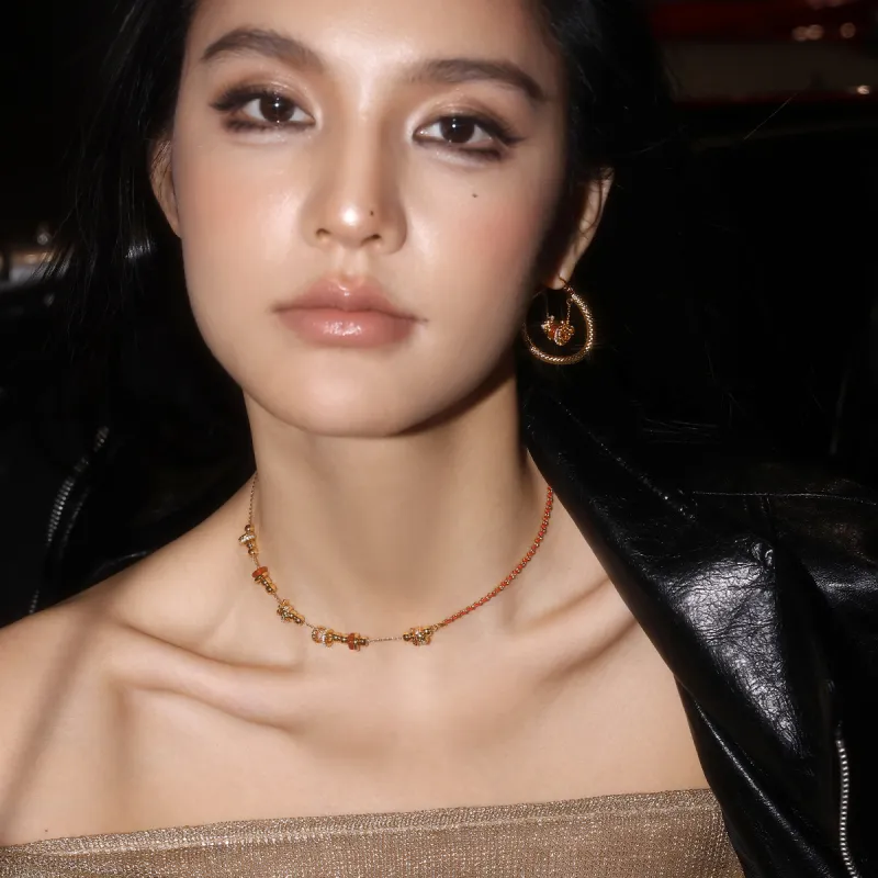 Стиль:Красная нить, ткань вязаная, медная монета, агат, удача, ожерелье