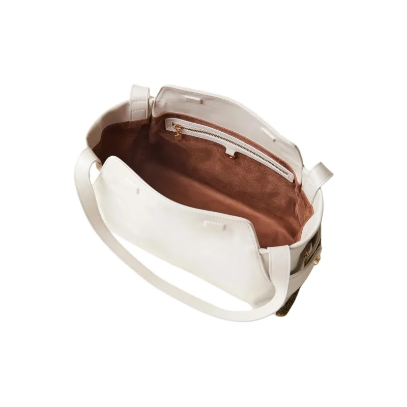 BORBONESE Napa Голень Кожа Сумка Сумка через плечо Средняя Женская Жемчужно-белая
