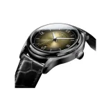 Чёрный корпус, серый циферблат, ремешок, стиль.