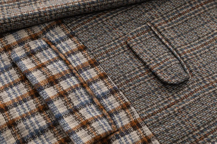 Ткань 1: 48,0% полиэстер, 29,1% овечья шерсть, 15,2% акрил, 7,7% другие волокна (клей включен; исключая спайс-подкладку)