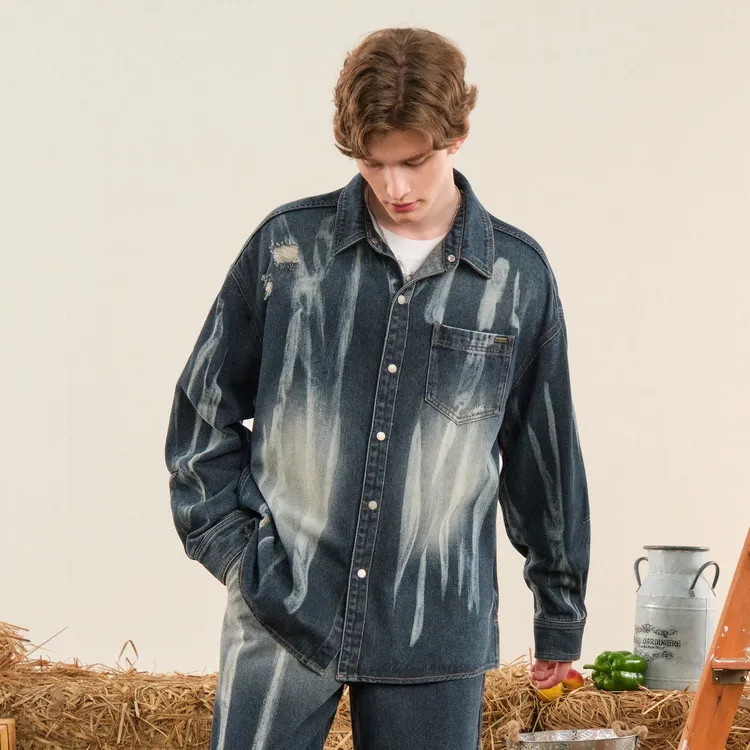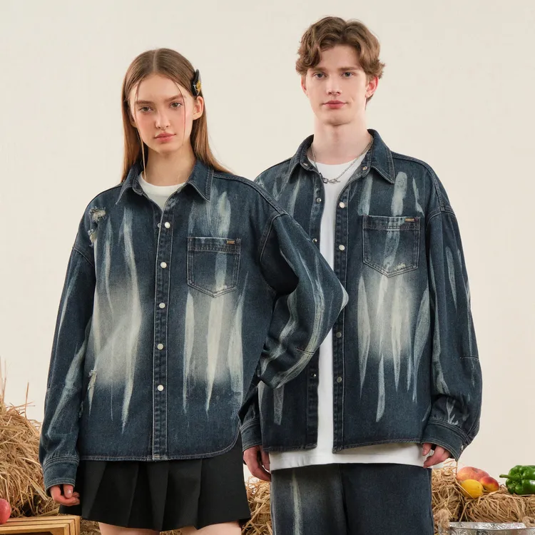Bosieagender Рубашка Унисекс Винтаж Синий