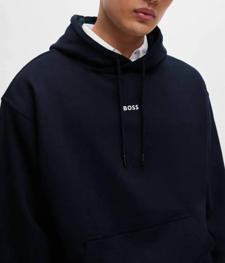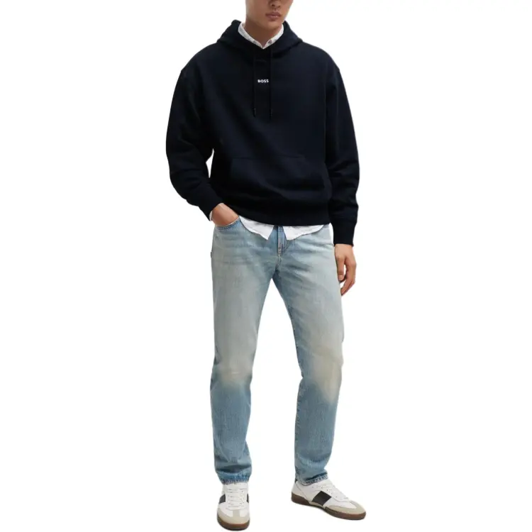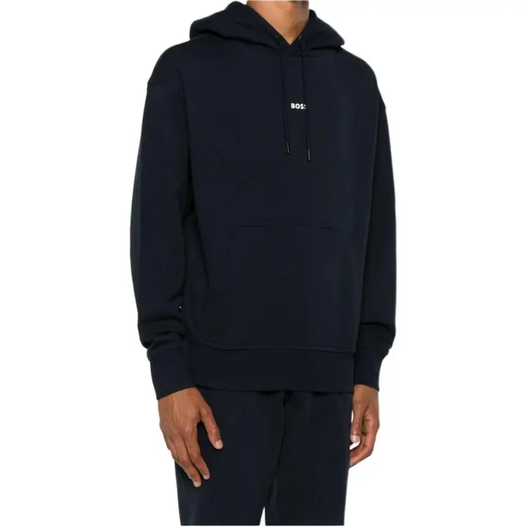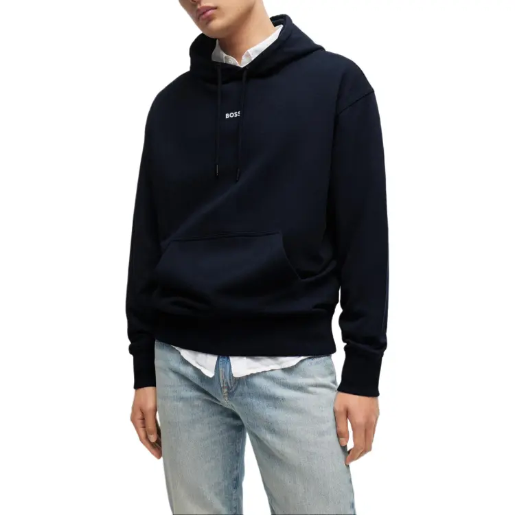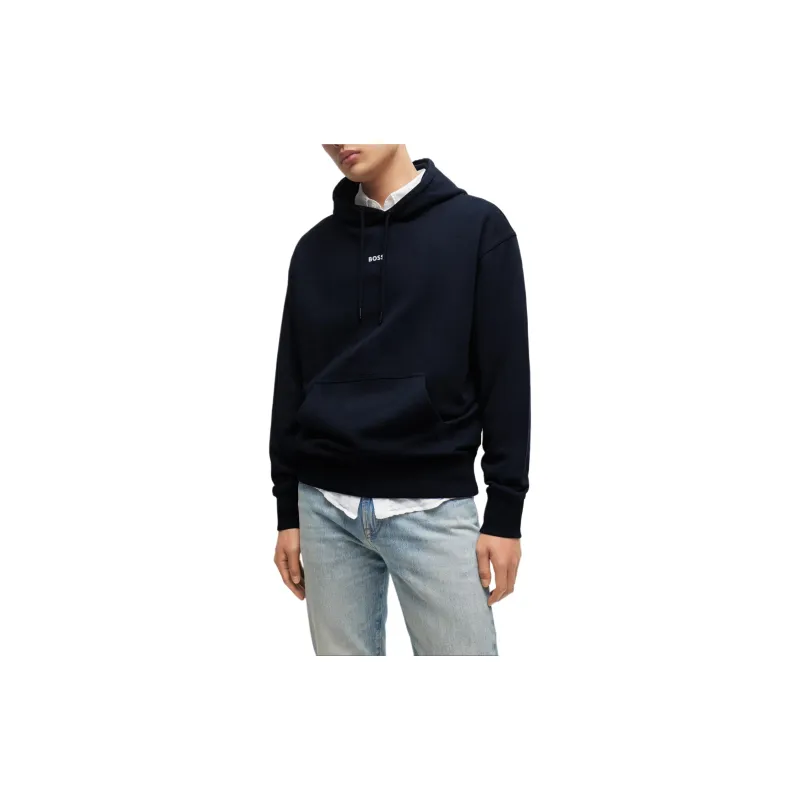Hugo Boss SS24 Cotton Terry Толстовка с Контрастным Логотипом Толстовка Мужская Темно-Синяя
