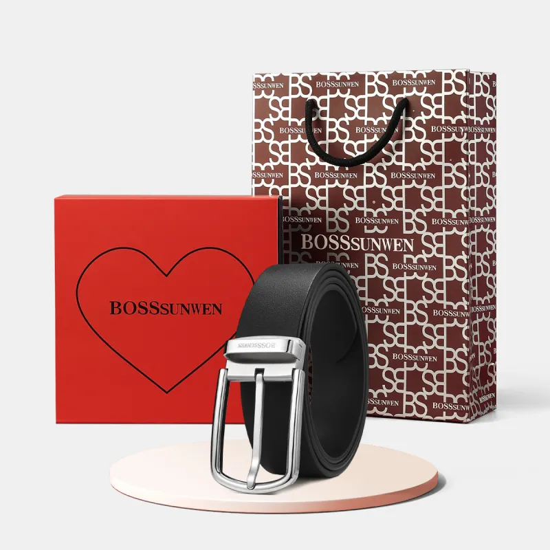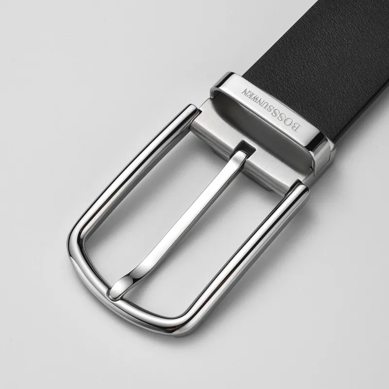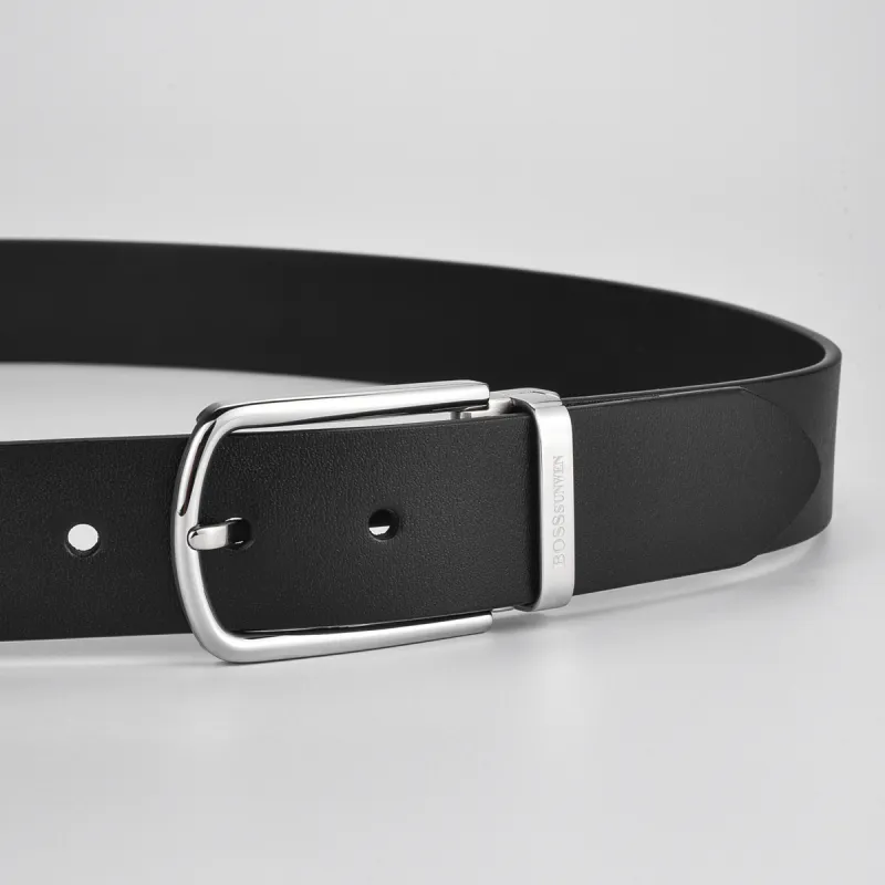BOSSSUNWEN Ремешок из крупнозернистой текстуры коровьей кожи застежка-булавка мужской 3,5 см