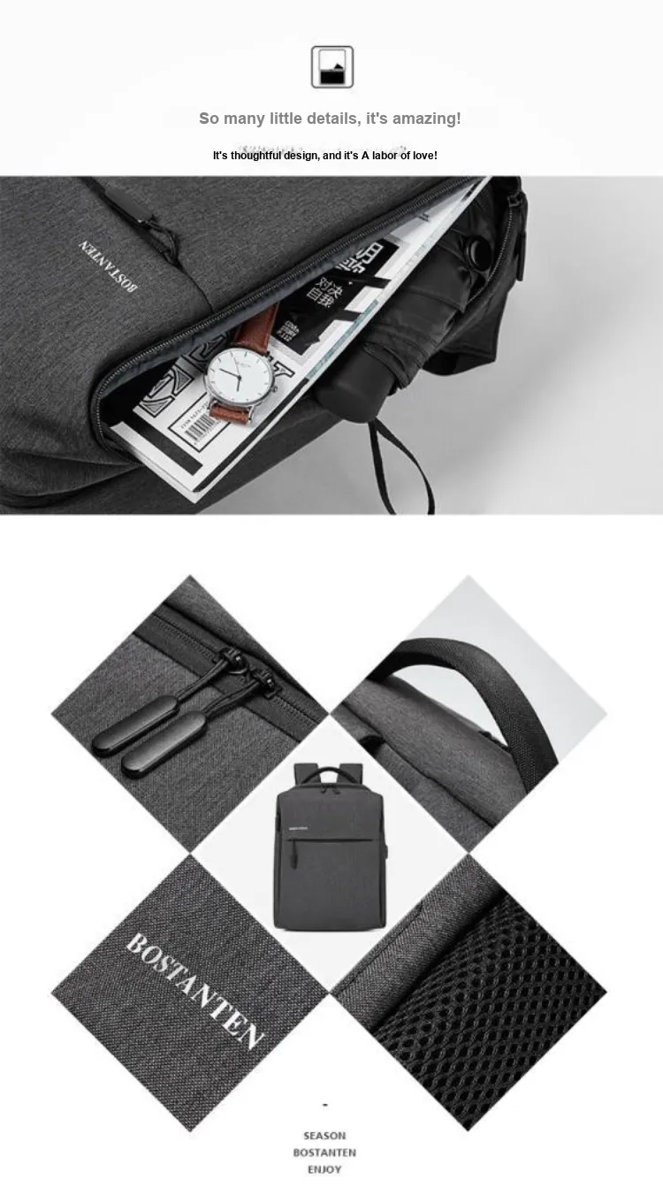 BOSTANTEN Ткань Рюкзак Средний Мужской Темно-Серый