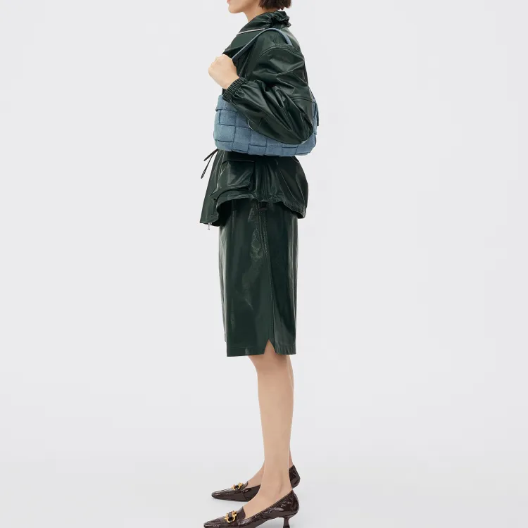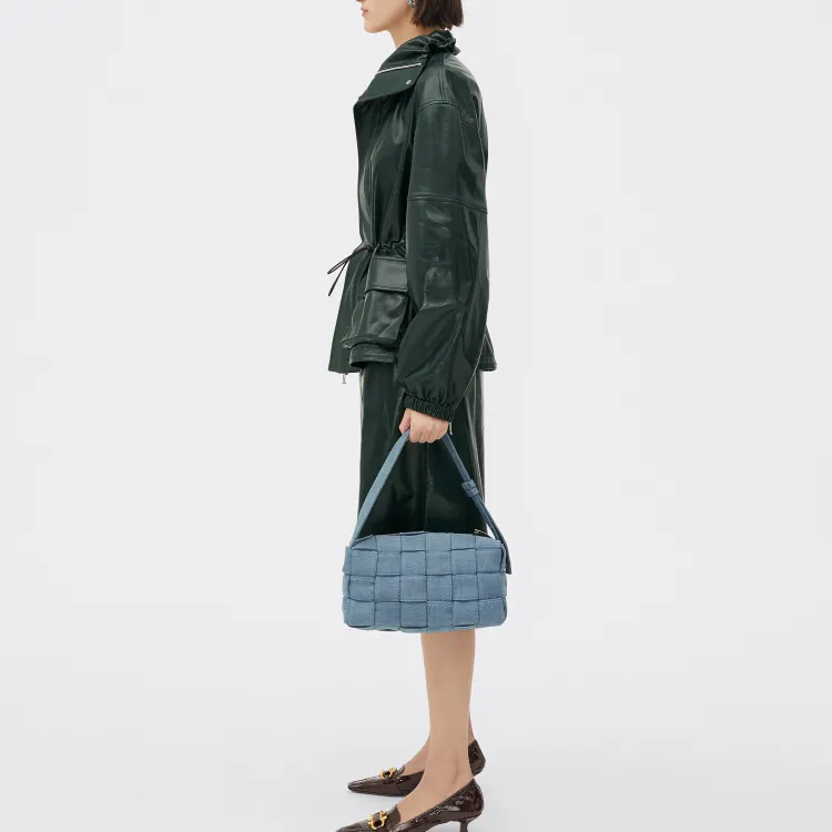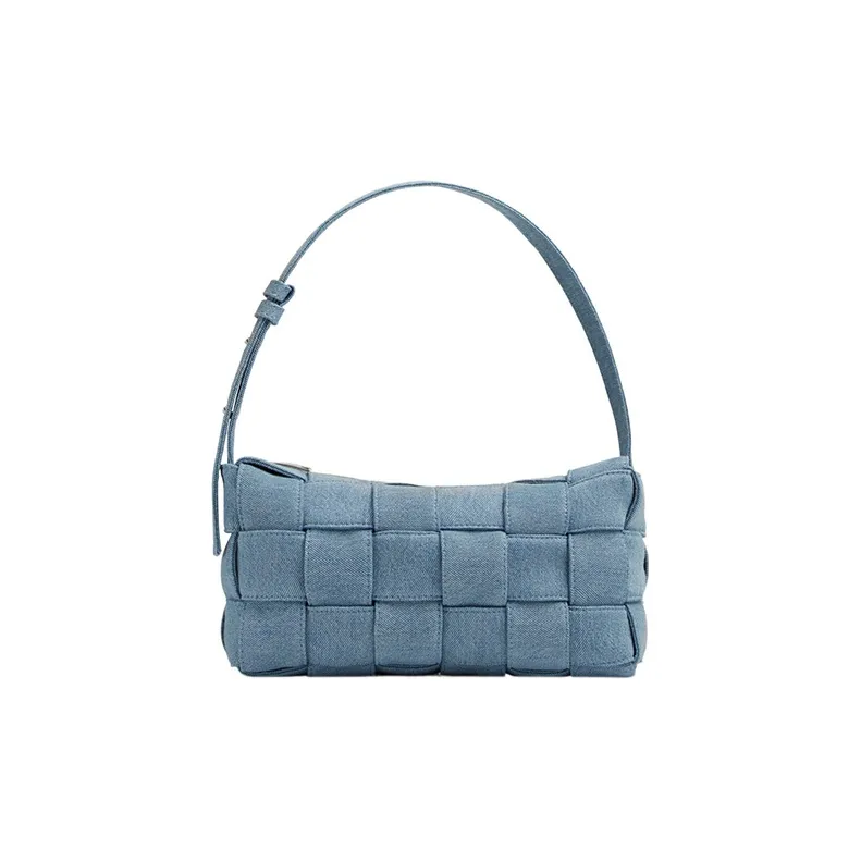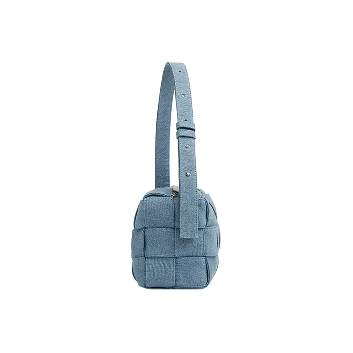 Bottega Veneta Cassette Хлопок Washed Деним Плечевая Сумка Сумка Сумка через плечо Женская Indigo Washed