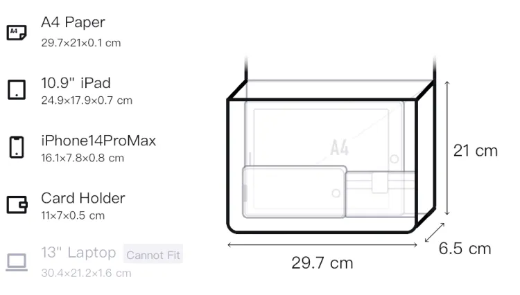 Д29,7*Ш6,5*В21см