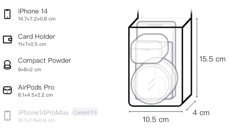 Длина 10,5 см * Ширина 4 см * Высота 15,5 см