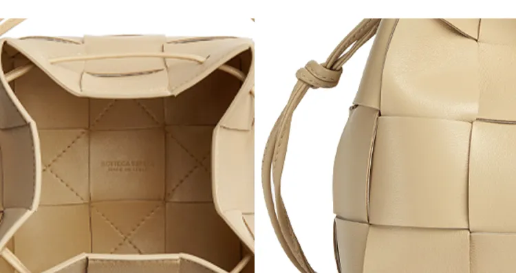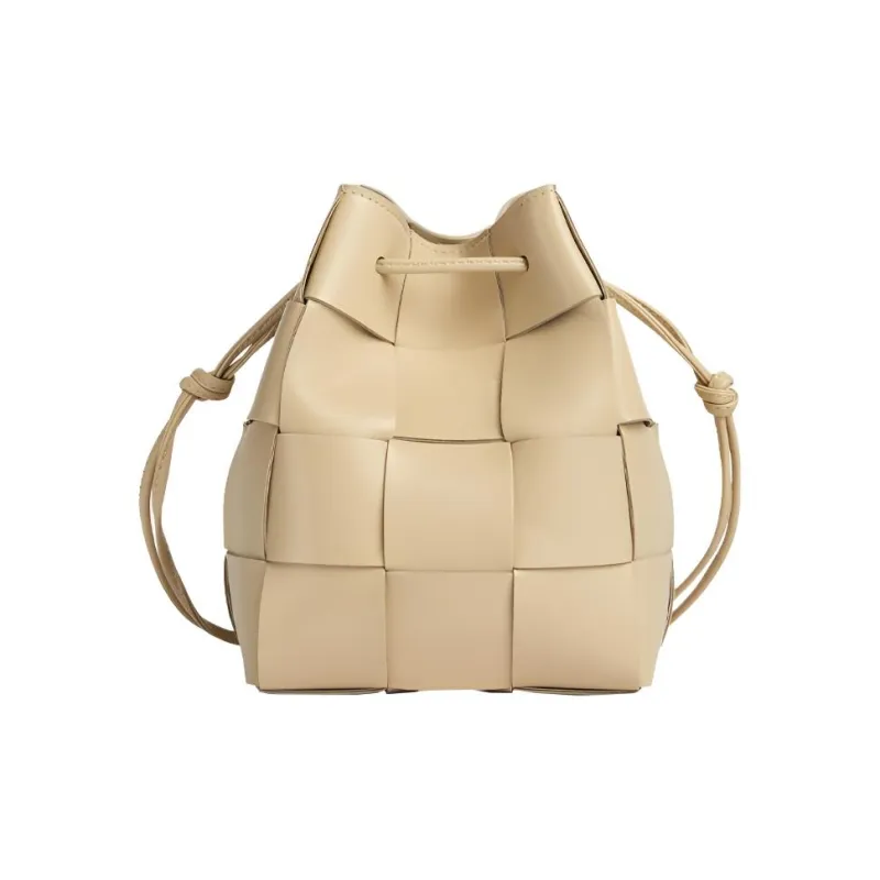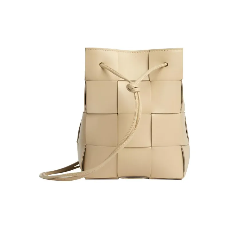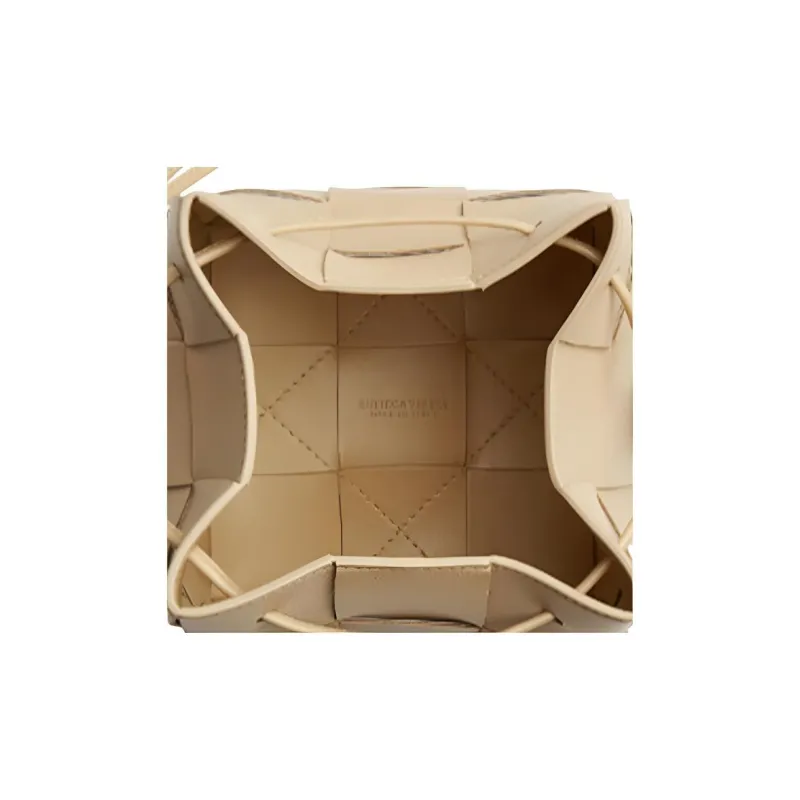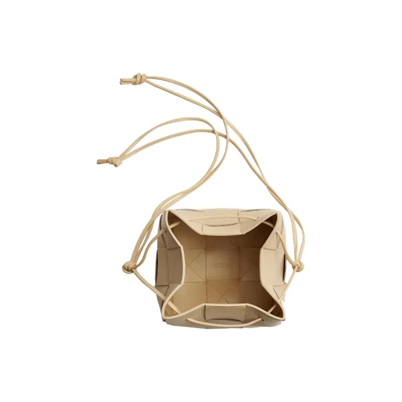 Bottega Veneta Cassette Телячья кожа Ведрообразная сумка Сумка через плечо Маленькая Женская Бежевая Пудинг Цвет