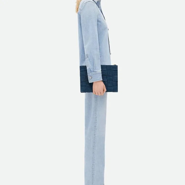 Bottega Veneta Cassette Denim Clutch Medium Women's Indigo Bottega Veneta Cassette Деним Клатч Средний Женский Индиго