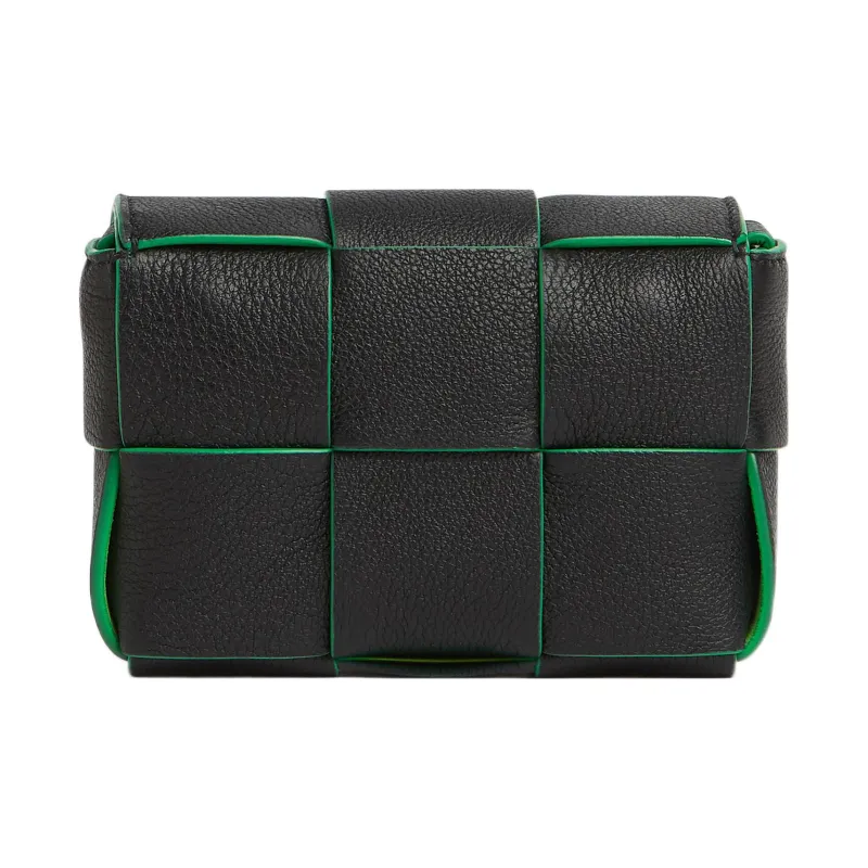 Bottega Veneta Cassette Sheepskin Сумка через плечо Мини Женская Черный Попугай Зеленый
