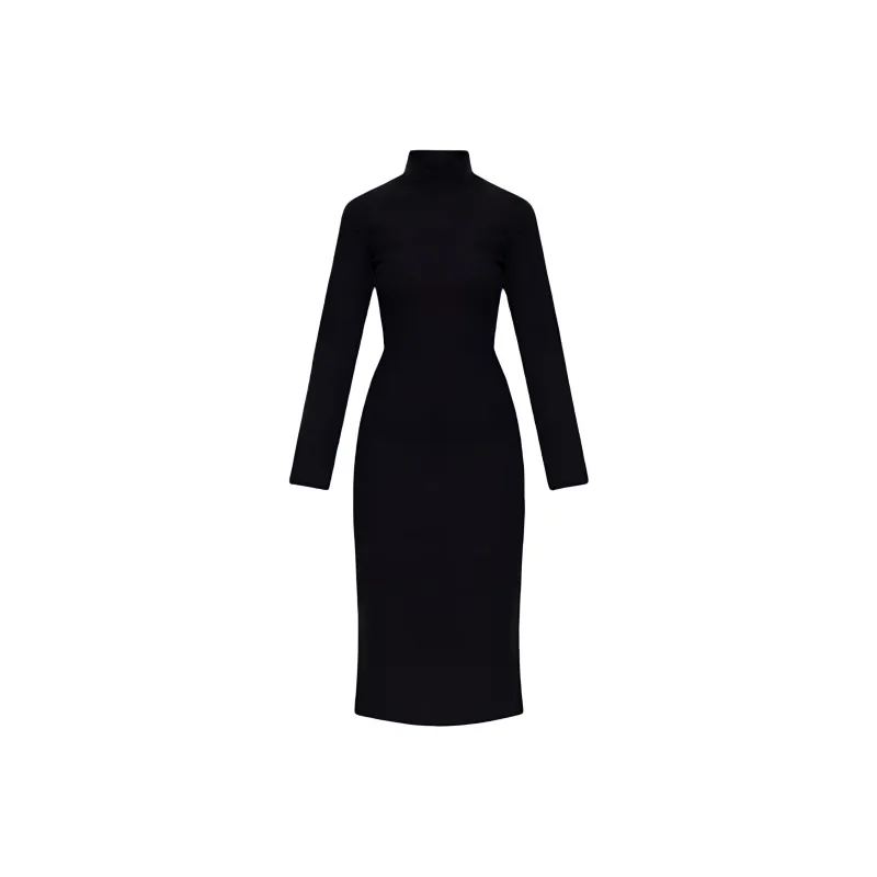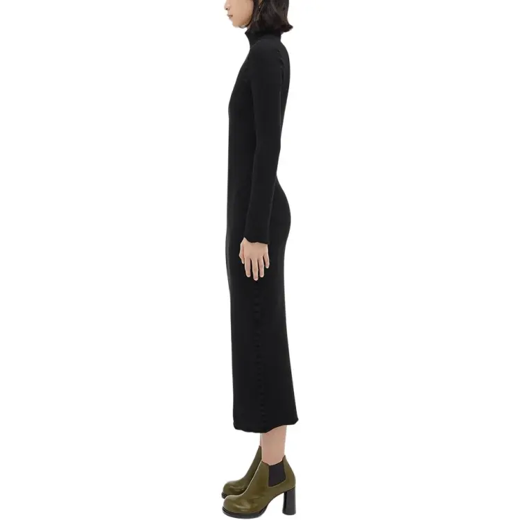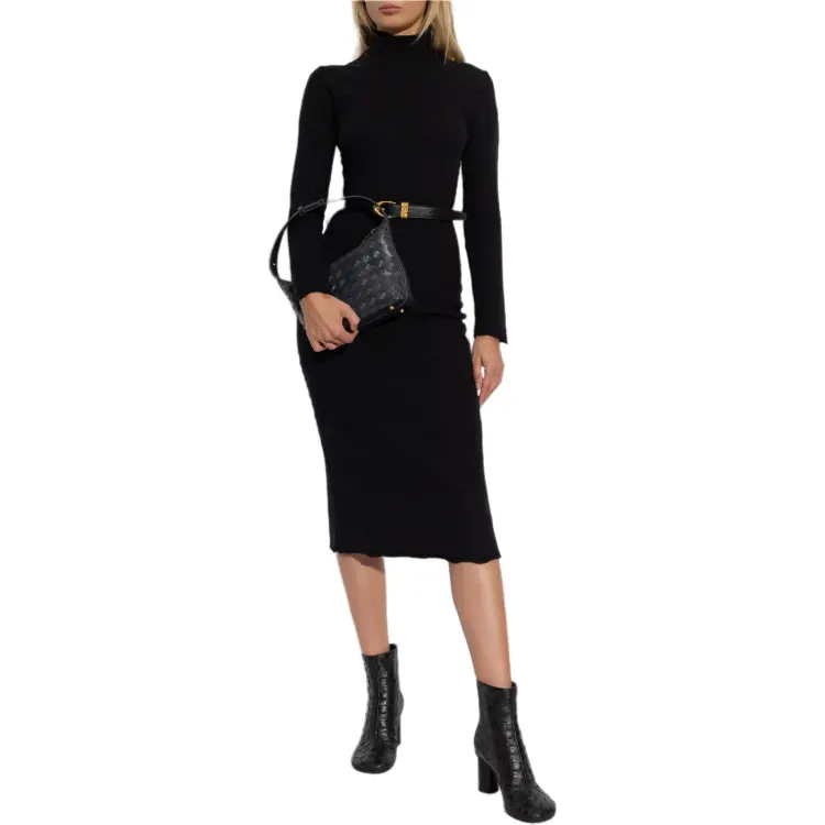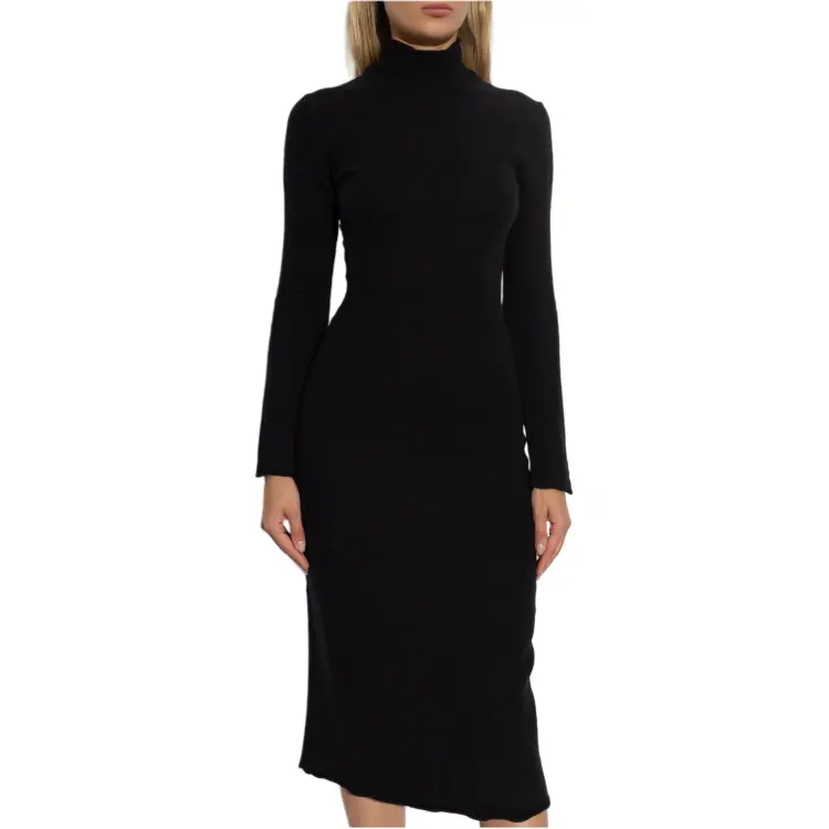 Bottega Veneta Длинное платье с длинными рукавами женское черное