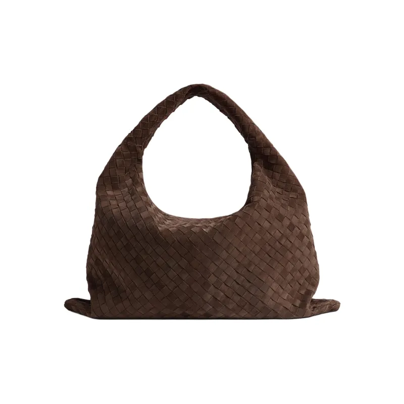Bottega Veneta Hop Телячья кожа Сумка на плечо Большая Женская Темно-коричневая