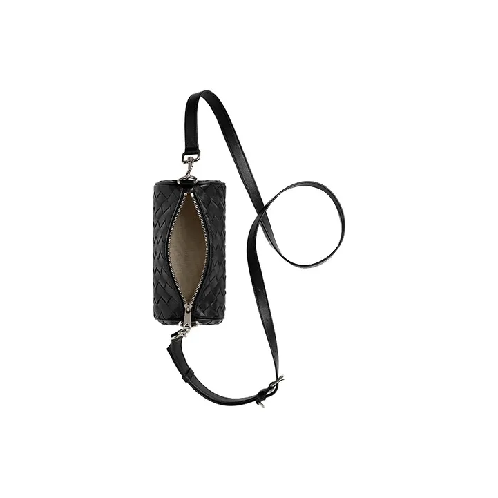 Bottega Veneta Intrecciato Корова Кожа Цилиндрическая Сумка Сумка через плечо Мини Мужская Черная