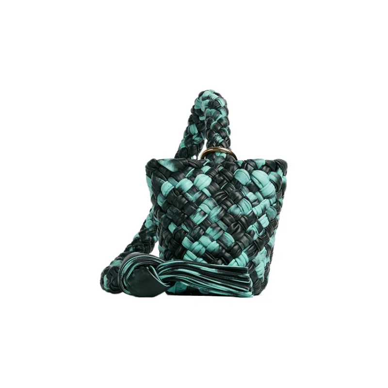 Bottega Veneta Kalimero Корова Кожа Ведро-Формовая Сумка Клатч Одно Плечо Сумка Маленькая Женская Зеленая Черная