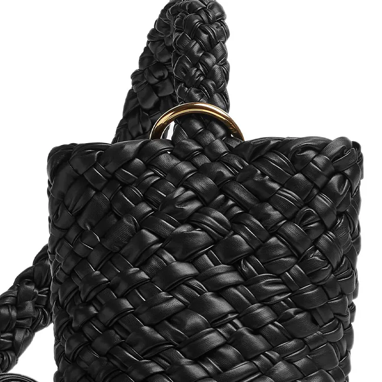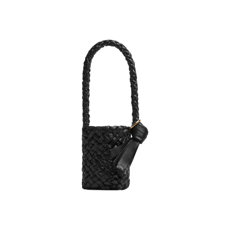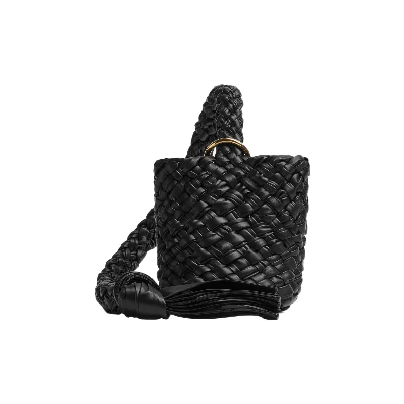 Bottega Veneta Kalimero Корова Кожа Ведрообразная Сумка Одно Плечо Сумка Маленькая Унисекс Черная