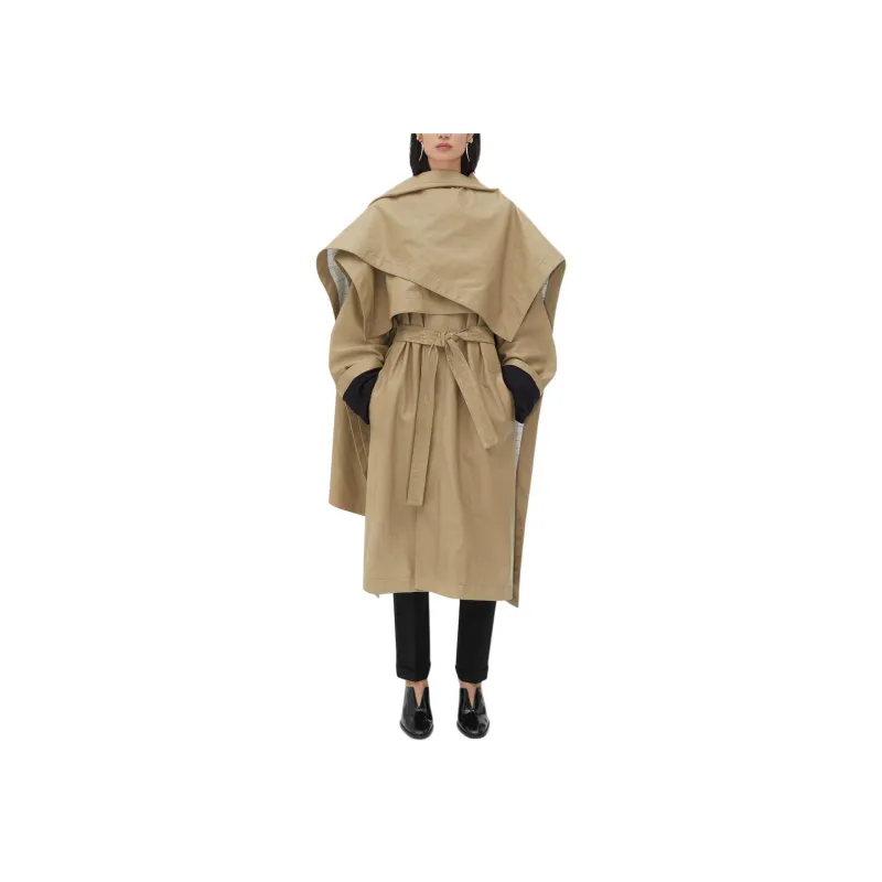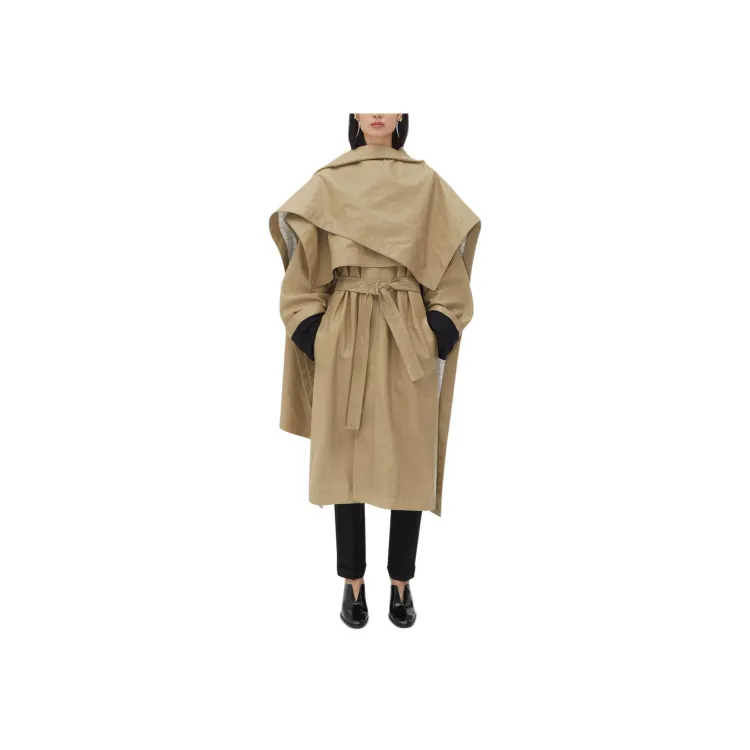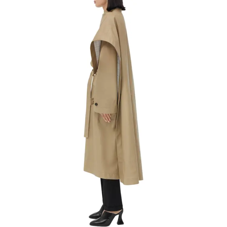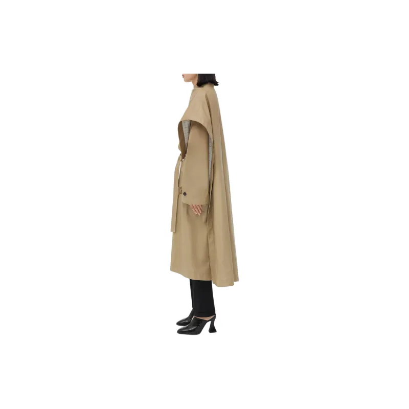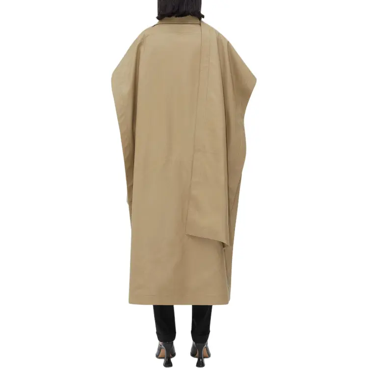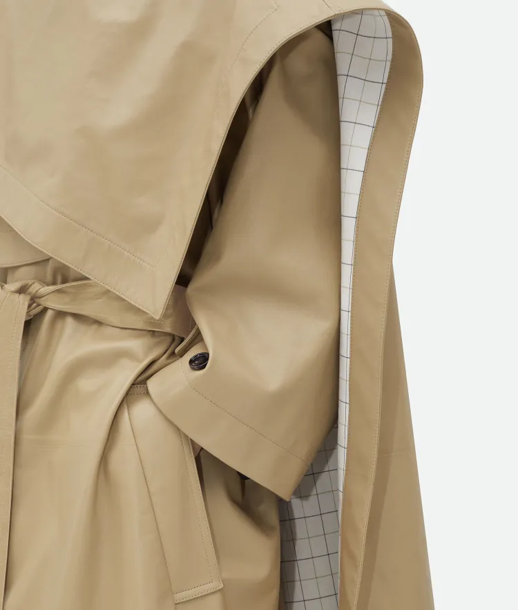 Bottega Veneta Кожа Плащ с Check Подкладкой Тренчкот Женские Хаки