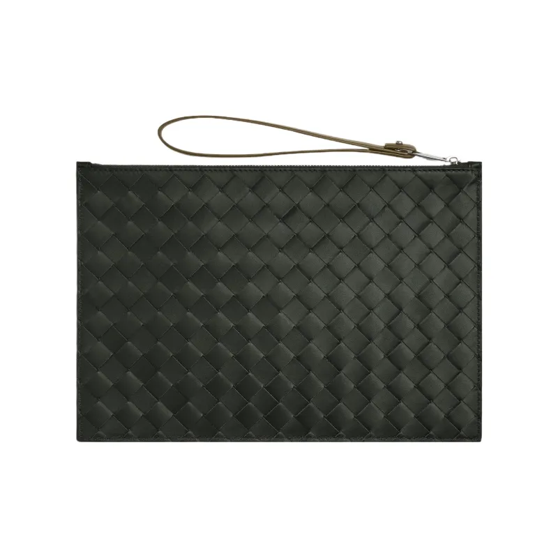 Bottega Veneta Кожа Клатч Средний Мужской Темно-зеленый и Грязно-коричневый