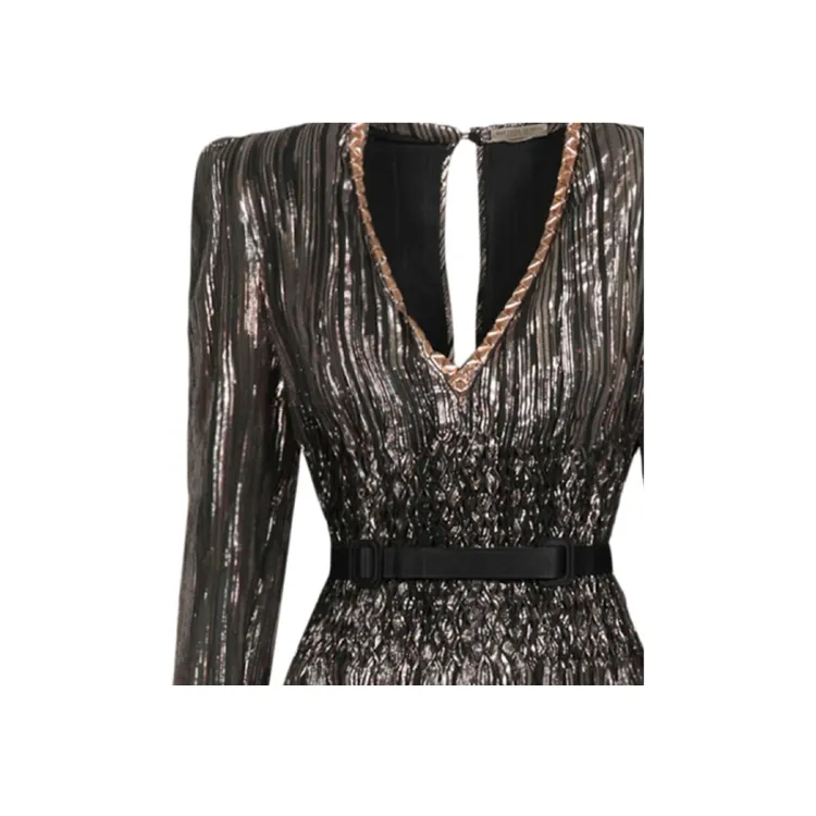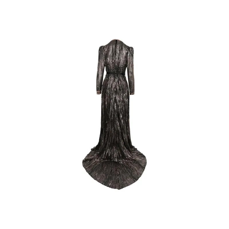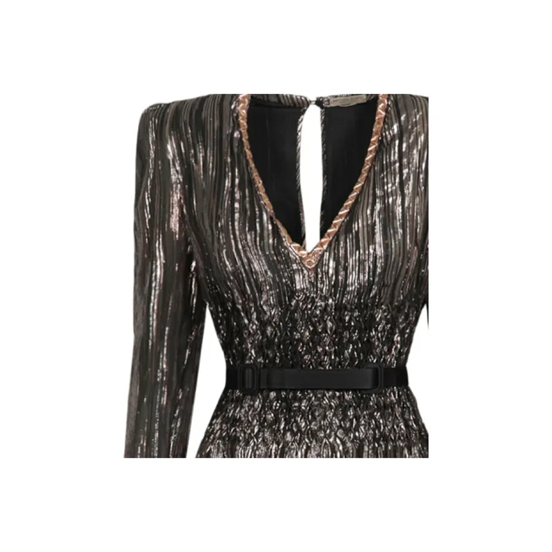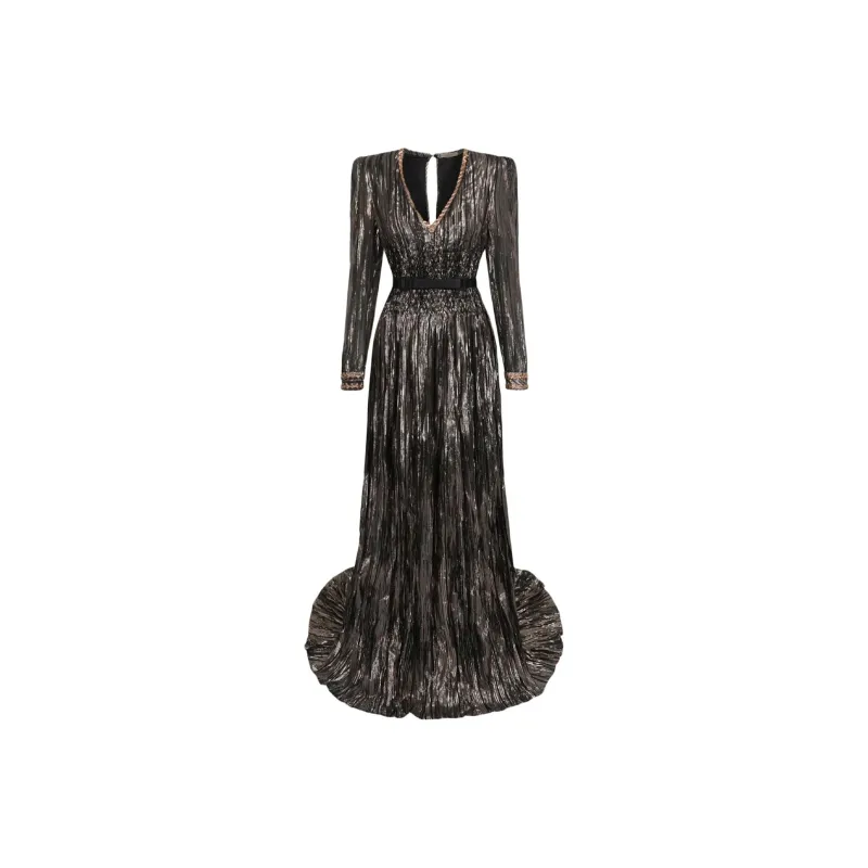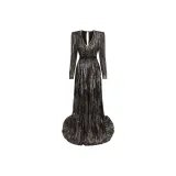 Bottega Veneta Длинное платье с длинными рукавами женское коричневое