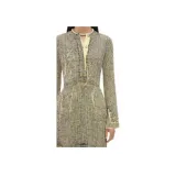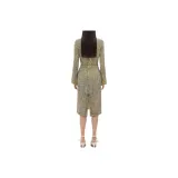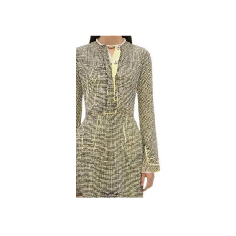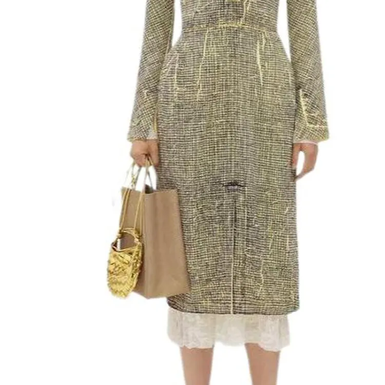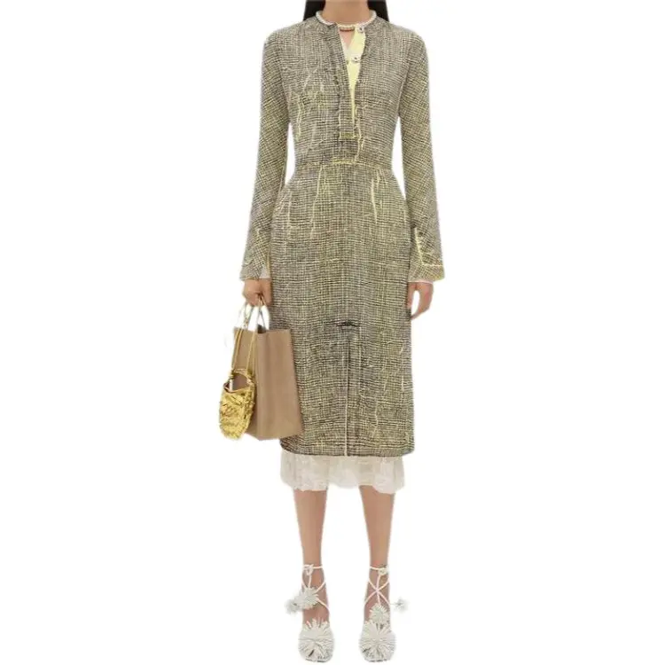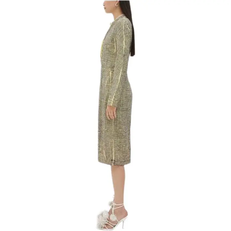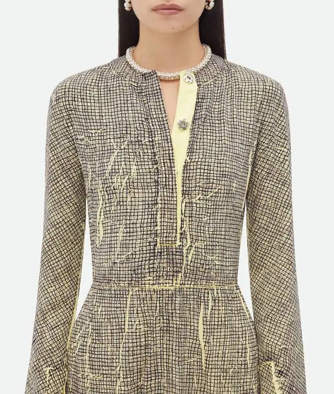 Bottega Veneta Printed Вискоза Creased Платье Длинный Рукав Платье Женское Желтый Уголь