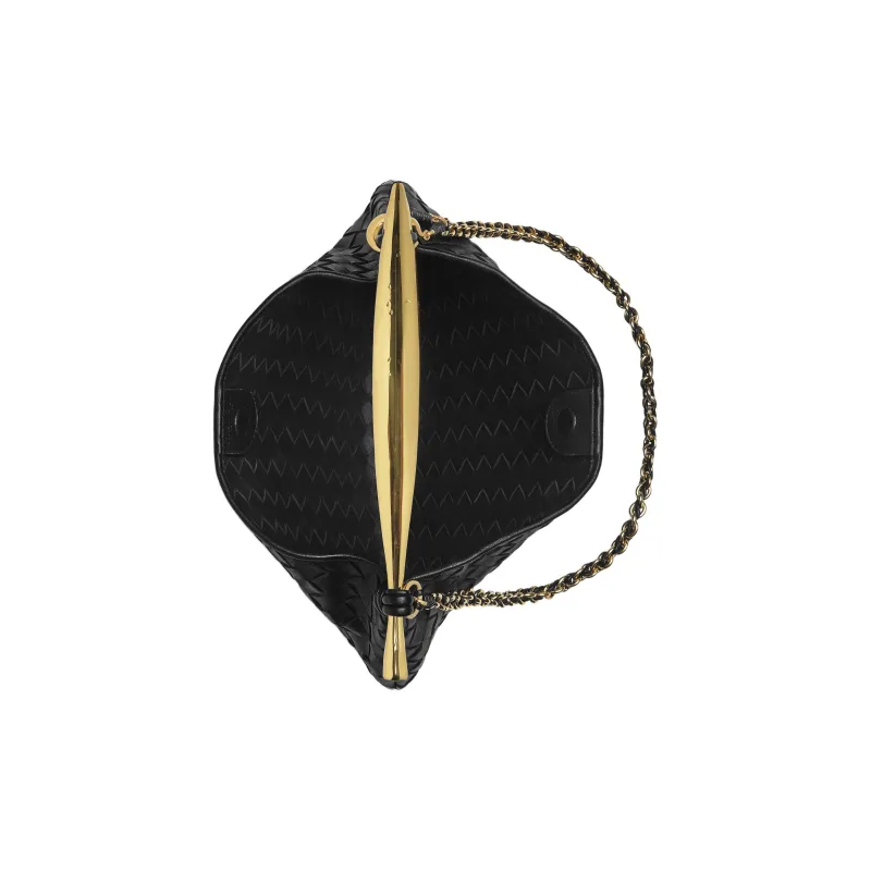 Bottega Veneta Sardine Овечья кожа Одно плечо Ручная сумка Сумка через плечо Маленькая Женская Черная