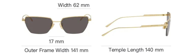 Bottega Veneta Металл Прямоугольные Солнцезащитные очки Мужские Золотые