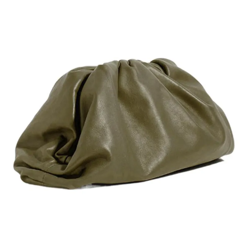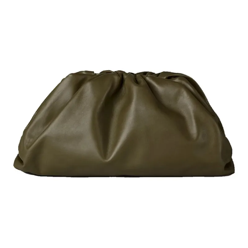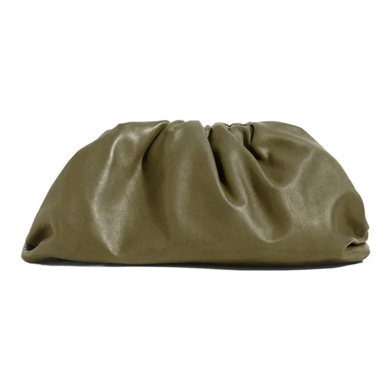 Bottega Veneta POUCH Облачная Сумка Телячья Кожа Клатч Женский Горчично-Зеленый