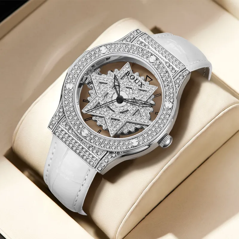 BOUX Possession Collection Кварцевый механизм Коровья кожа Ремешок Часы Женские Часы С циферблатом Skeleton