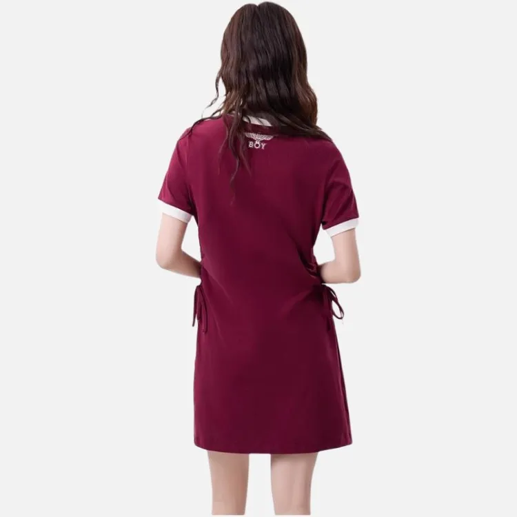 Boy London Короткий рукав Платье Женское Бордовый Экрю
