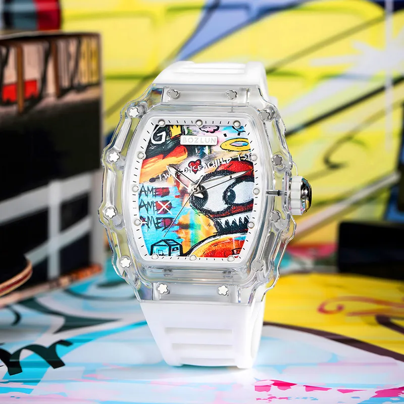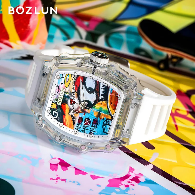 BOZLUN KOTA Collaboration I Am Legend Collection Механическое устройство силиконовый ремешок мужские часы синий циферблат