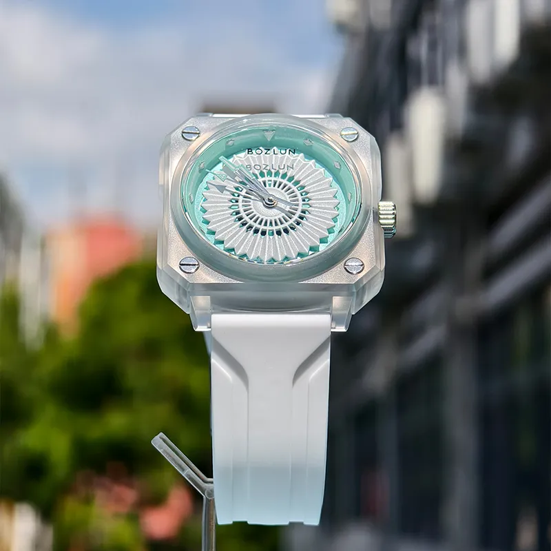 BOZLUN Кварцевый механизм силиконовый ремешок унисекс золотой циферблат