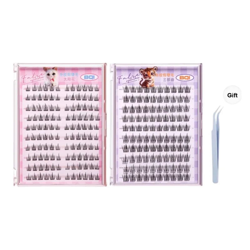BQI Один Cluster Легкий Большой объем 10 Rows+THREE STEP Клей Бесплатно Накладные ресницы Подсолнух
