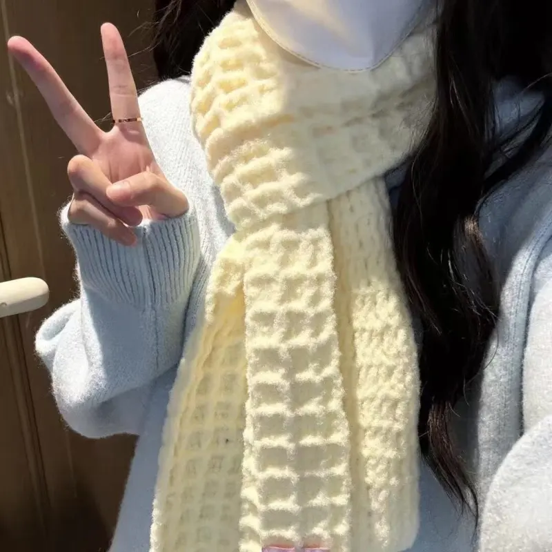 Молочно-белый шарф в виде вафли, материал, сумка