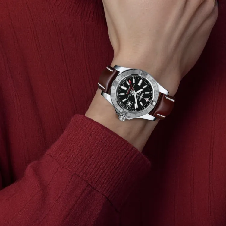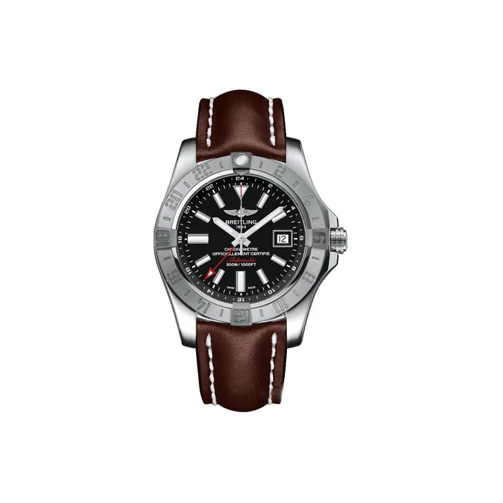 Breitling Автоматический Механический Механизм Мужские Часы 43 мм Черный Циферблат Корпус из Нержавеющей Стали Кожаный Ремешок