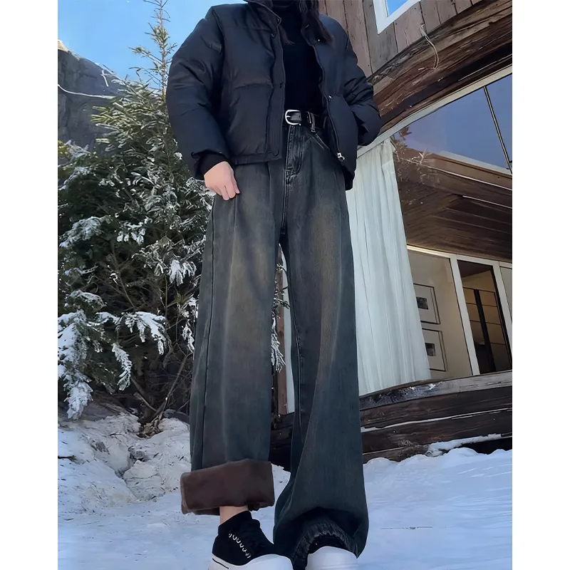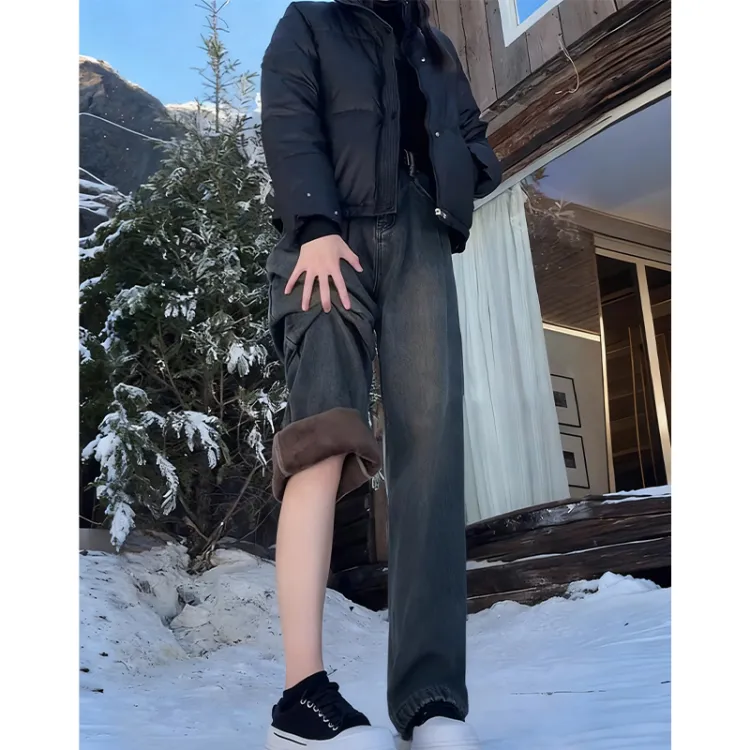 BRG Винтажный синий с флисовой подкладкой женские джинсы